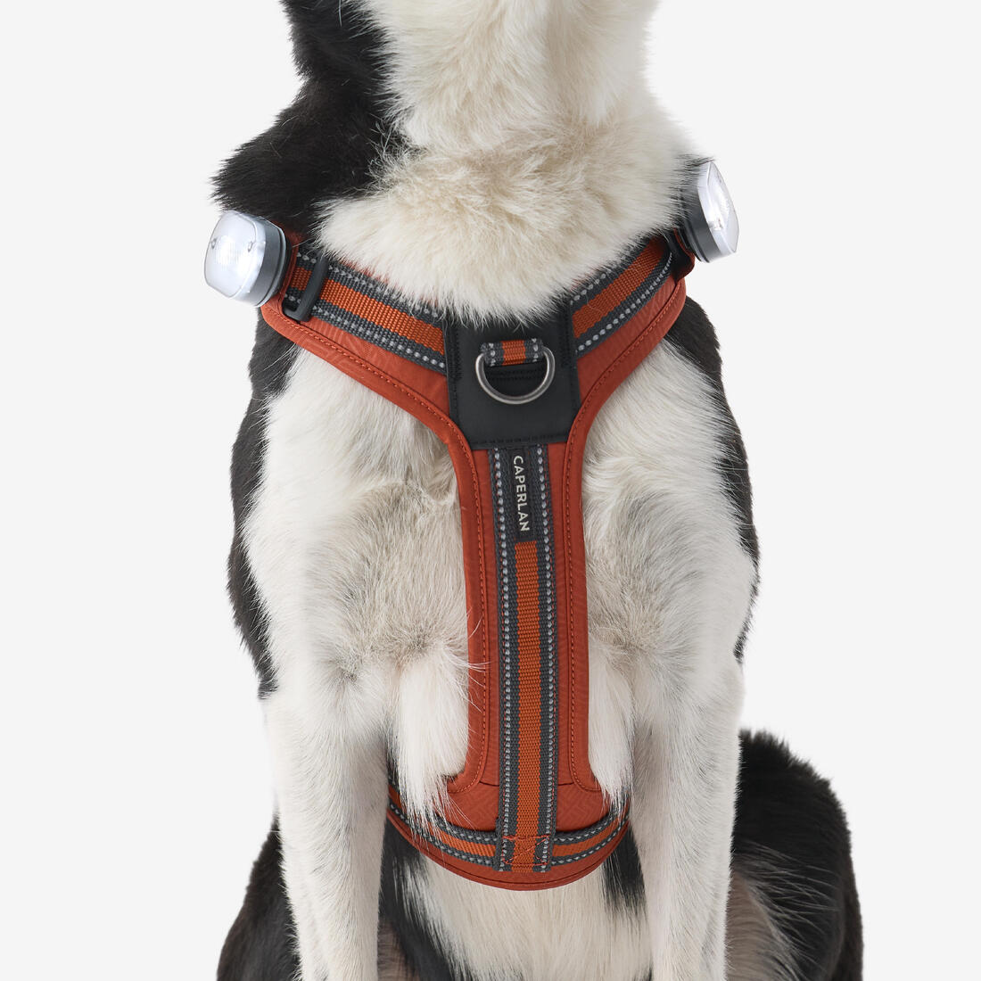 Un fil réfléchissant est tissé avec la sangle qui vous permet de mieux repérer votre chien lors de vos balades nocturnes. Ce harnais est équipé de 2 emplacements spécifiques pour pouvoir y clipser des lumières. Vous pourrez alors vous balader de jour comme de nuit avec votre compagnon à quatre pattes ! Vous pourrez le retrouver facilement dans l'obscurité.
