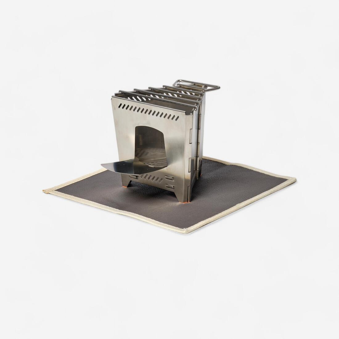 Cuisinez sur le feu facilement avec le réchaud à bois pliable en acier inoxydable. Idéal pour 1 ou 2 personnes, livré avec un tapis ininflammable et une housse