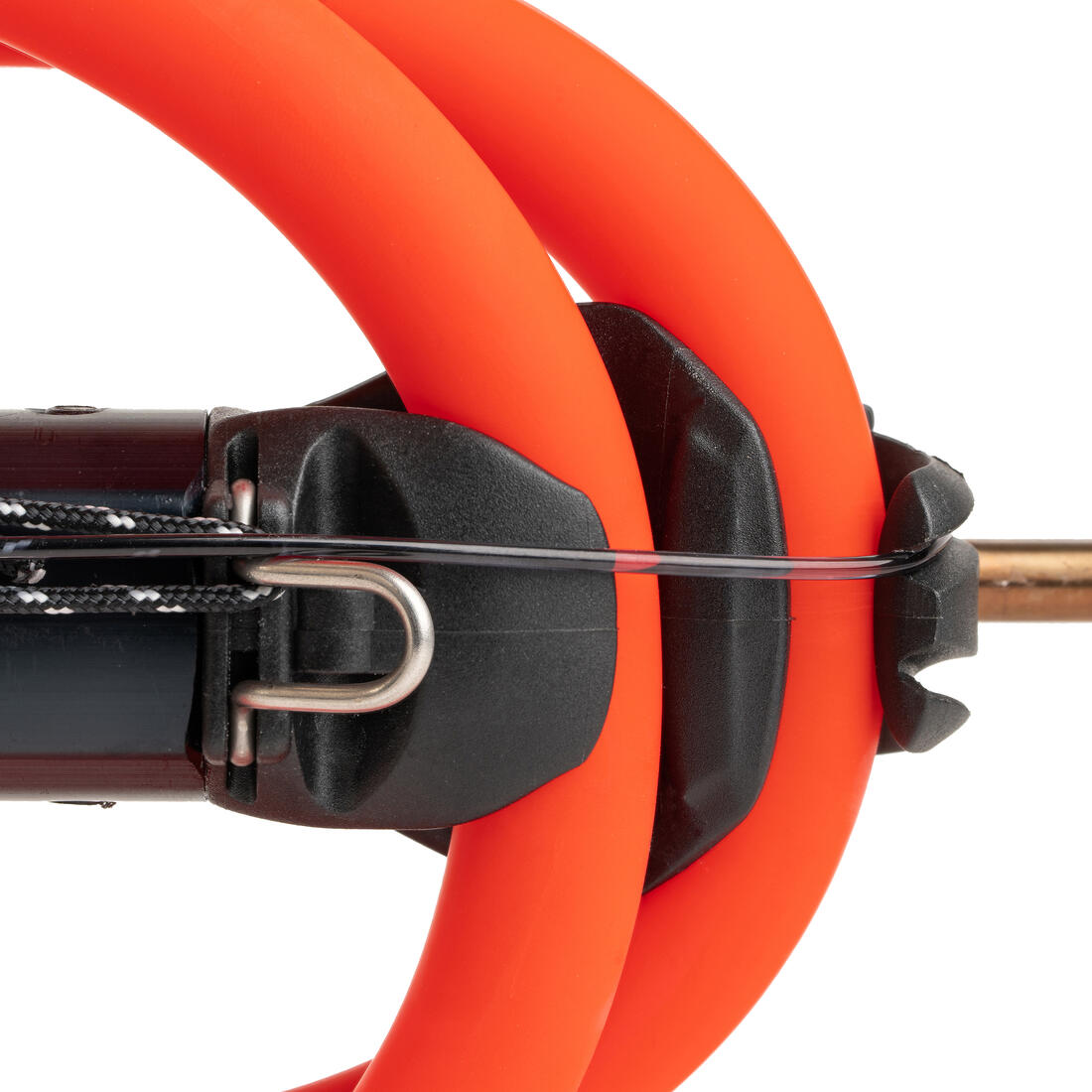 - Poignée en technopolymère renforcé de fibres de verre - Mécanisme de dégagement en matériaux composites avec détente Bouton de sécurité latéral basculant - Accroche-fil latéral à retour automatique et dent de retenue creusés - Fixation moulinet renforcé avec pivot passant en acier - Tête pour double élastique avec retenue magnétique de la flèche: une fois placée, la flèche est retenue par deux aimants montés dans une chambre étanche... - Tête pour double élastique ø mm14