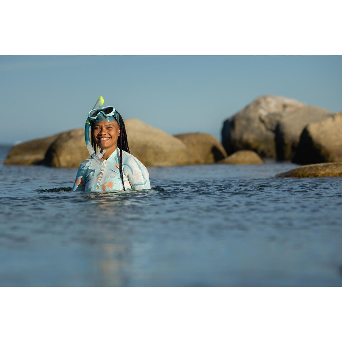 Le snorkeling est une activité simple, ludique et pour toute la famille ! Respirer à travers un tuba est plus exigeant que de simplement nager. SI vous vous sentez fatigué, que vous ressentez un manque d'air ou des vertiges, retirez votre masque et tuba et sortez de l'eau. L'usage de ce produit n'est pas recommandé si vous avez des problèmes cardio-vasculaires (infection des poumons, angine, asthme, hypertension, maladies cardiaques, etc). N'hésitez pas à consulter votre médecin en cas de doute