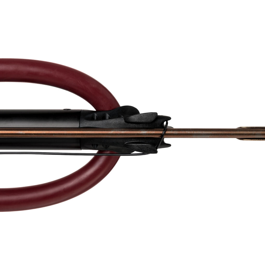 Prise en élastomère antidérapant est confortable pour une préhension optimale et une inclinaison adéquate pour un alignement bras fusil naturel. La crosse est en techno-polymères renforcé en fibres et billes de verre et la garde en inox 316L. Nouveau mécanisme tout inox 316L avec largue fil réversible et cassette inox. Peut accueillir des flèches de 7mm avec du fil de 2mm