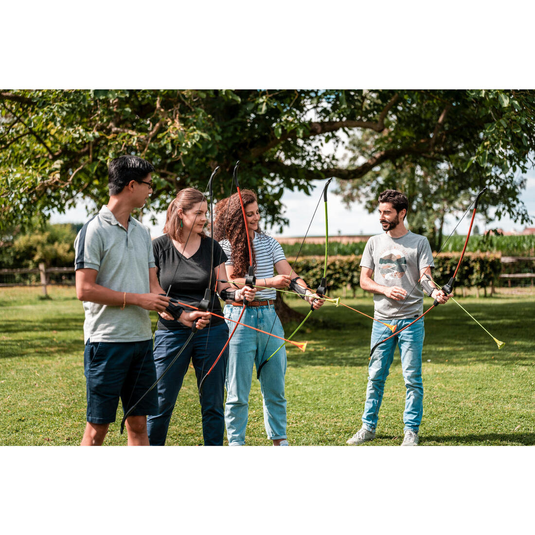 Nous avons conçu cet arc ambidextre pour découvrir le tir à l'arc en loisir entre 5 et 10 m avec une pointe ventouse (sécurité) ou acier selon vos envies !