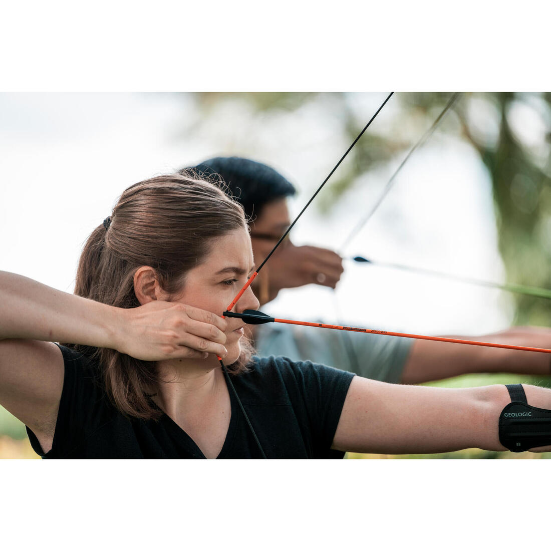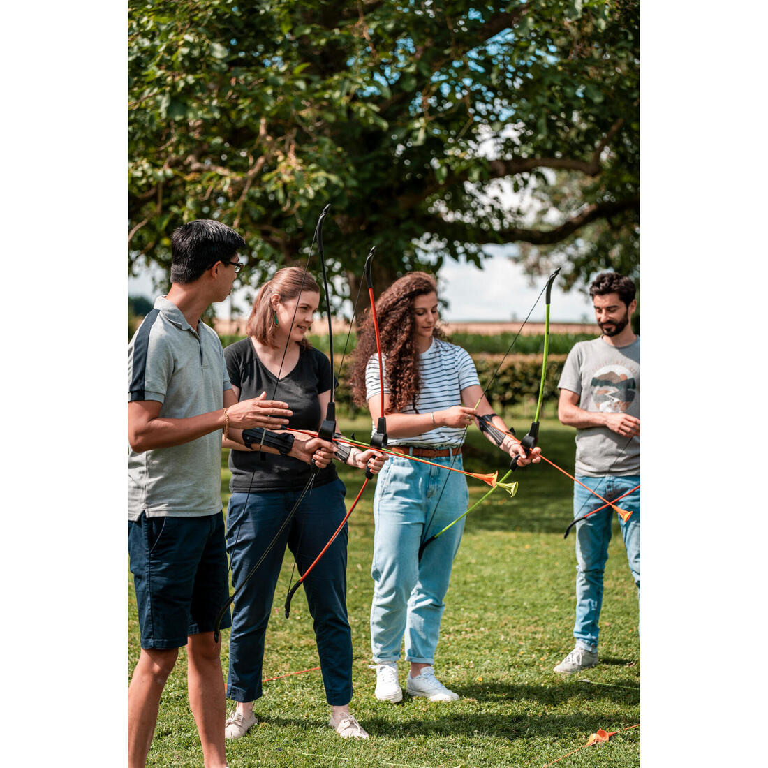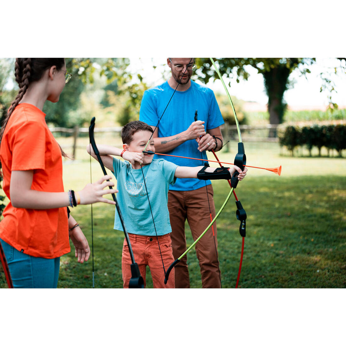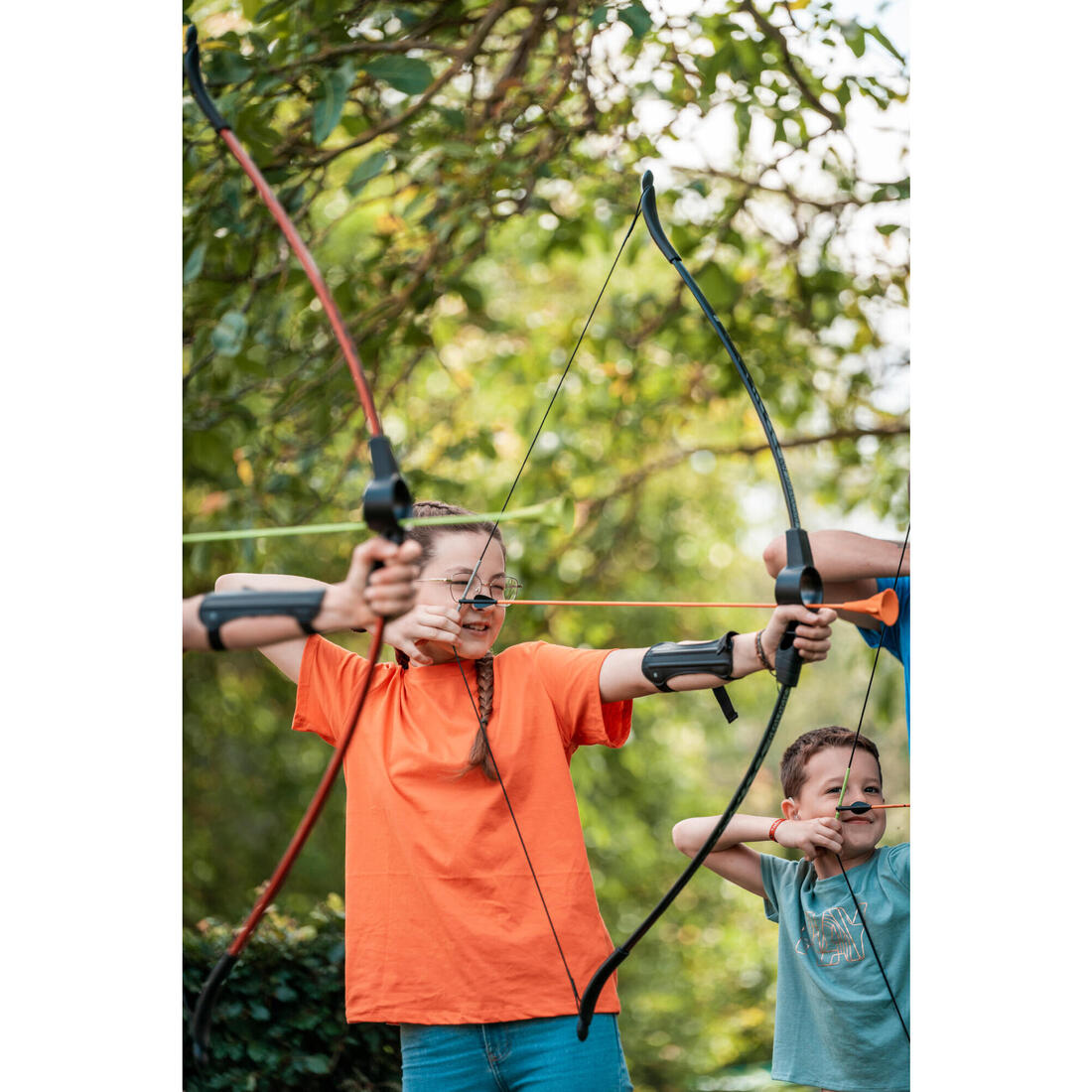 /! Ne jamais laisser un arc dans les mains d’un enfant sans surveillance permanente d'un adulte. Ranger arc et flèches hors de portée /! Ne jamais tirer une flèche en l’air, elle peut parcourir des centaines de mètres /! Ne jamais prendre pour cible : personnes ou animaux, l’environnement de tir doit être dégagé /! Vérifier avant chaque tir que la flèche est en bon état, retirer ses flèches sans personne derrière /! Un manquement aux règles de sécurité peut provoquer des BLESSURES MORTELLES