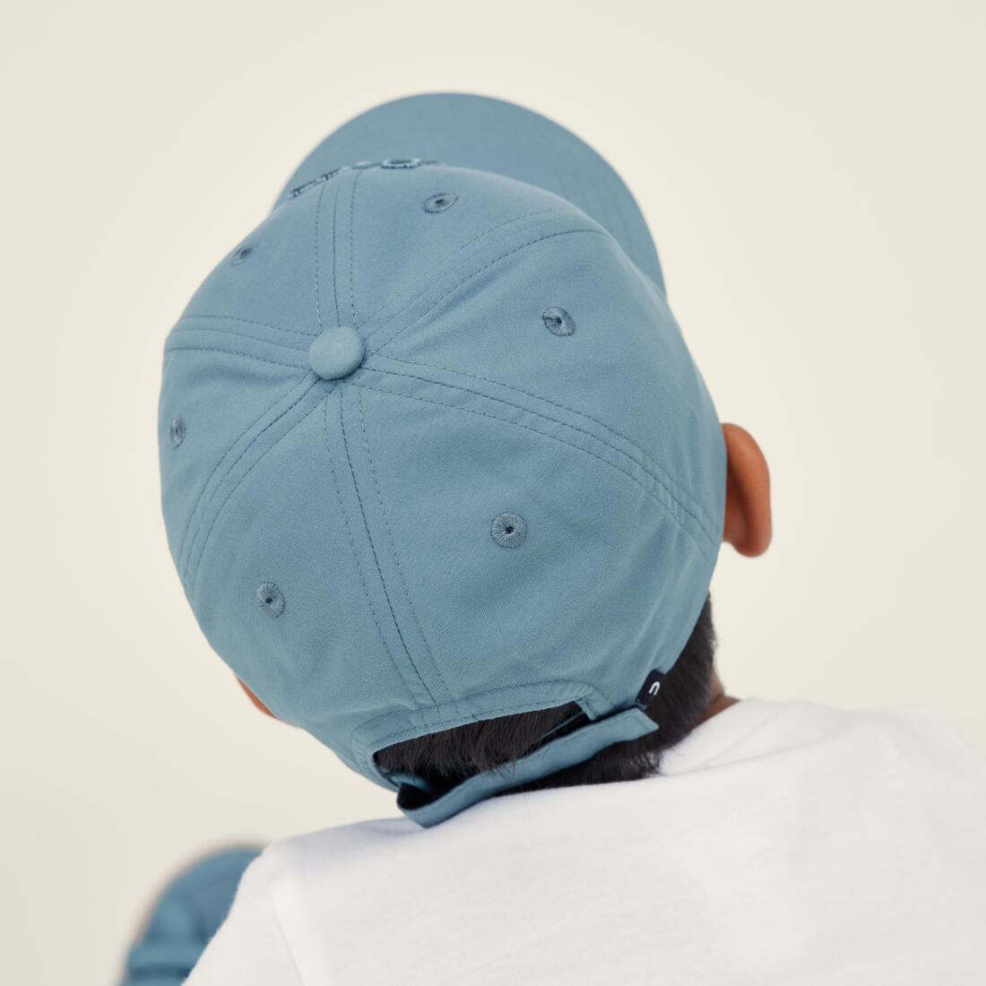 Chez Décathlon, nous avons réalisé une étude interne qui démontre que c'est surtout de la tête (et des pieds) qu'un enfant transpire le plus. Des données scientifiques qui nous ont guidé lors de la conception de cette nouvelle casquette. La matière douce et extensible permet donc également une bonne évacuation de la transpiration, afin de garder la tête de votre enfant au sec!