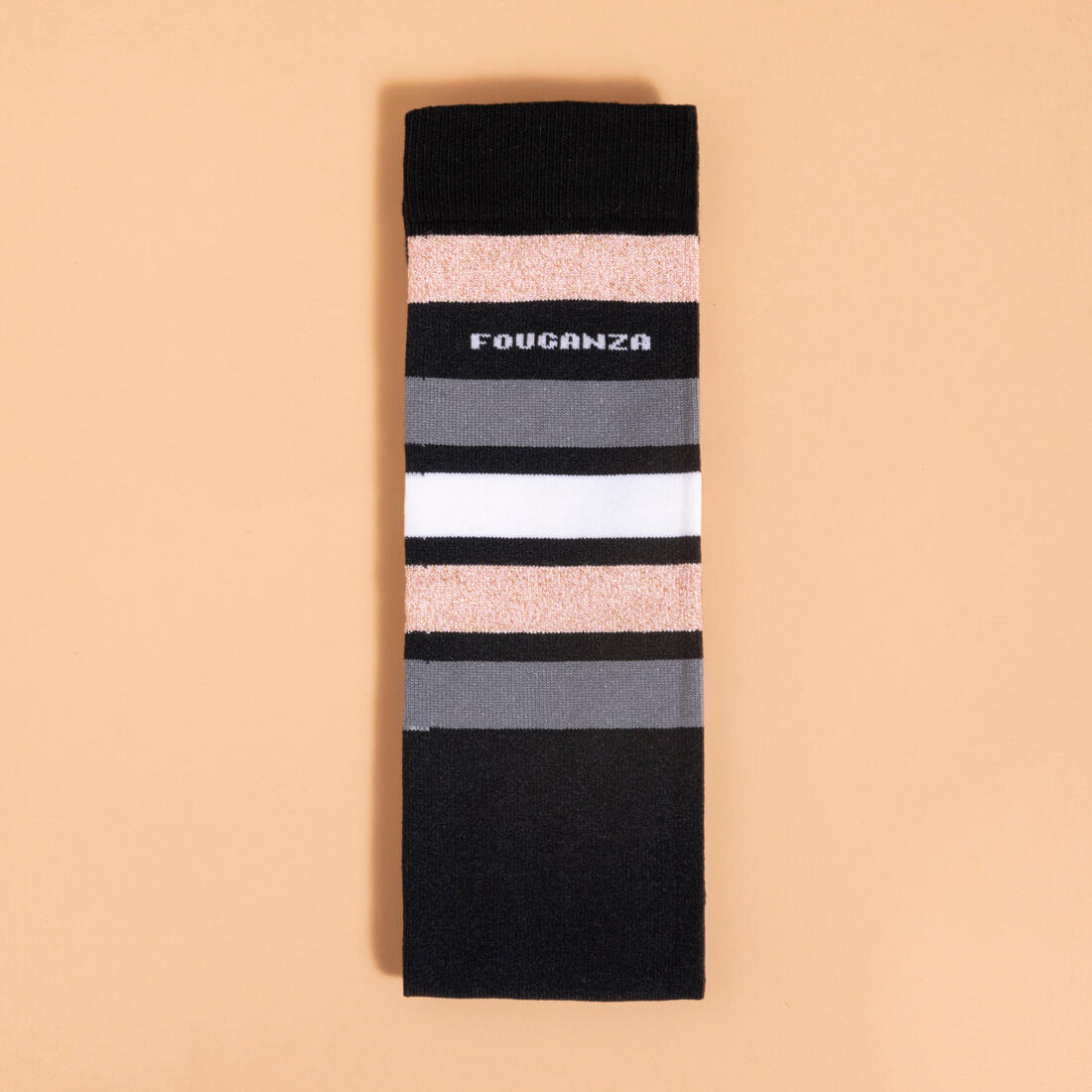 Chaussettes équitation adulte 100 noir rayures blanches et grises