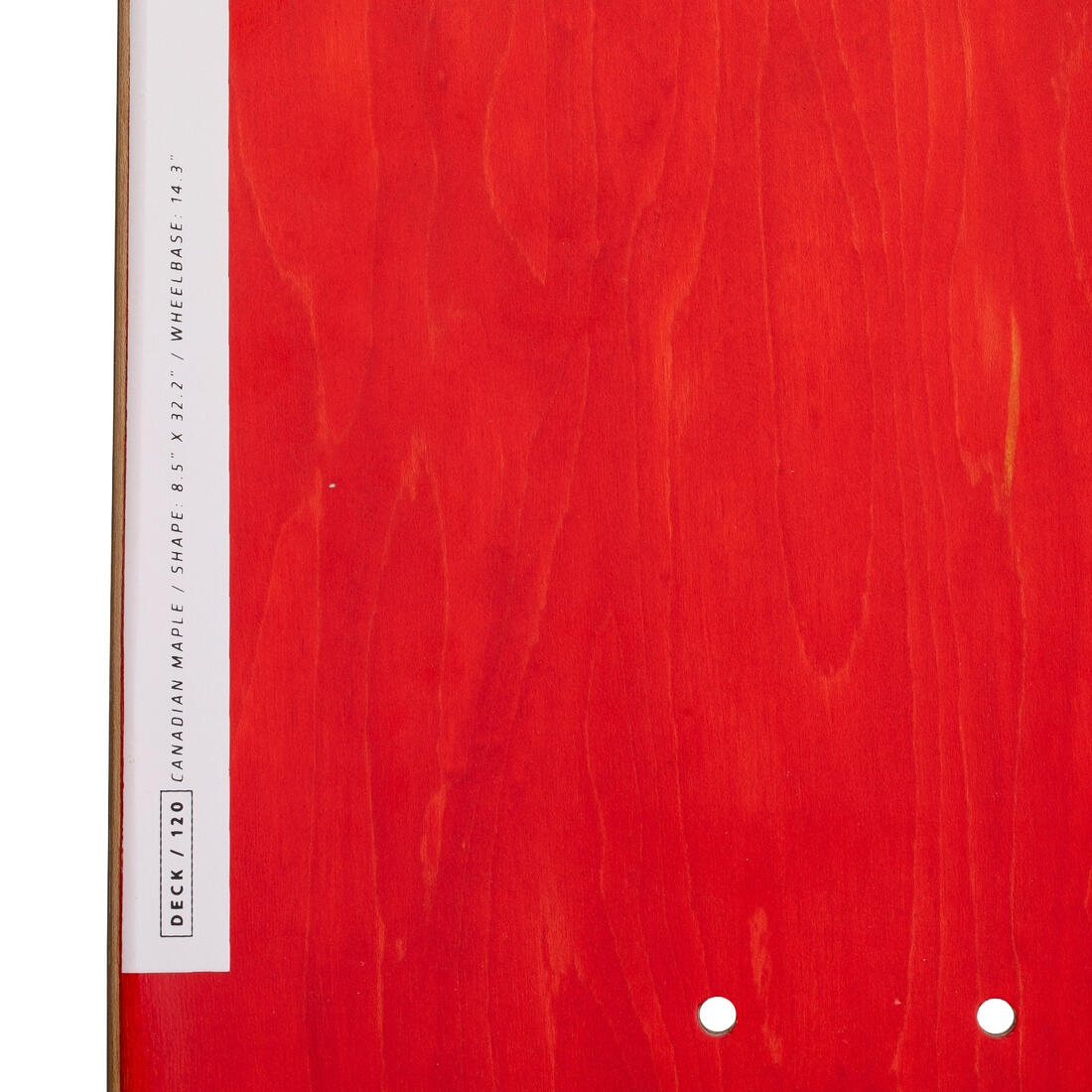 DECK 120 verte : 7.75" x 31,4" / Wheelbase : 14". DECK 120 jaune : 8" x 31.6" / Wheelbase : 14.1". DECK 120 bleu : 8.25" x 31.9" / Wheelbase : 14.2". DECK 120 rouge : 8.5" x 32.2" / Wheelbase : 14.3". DECK 120 noire : 8.75" x 32.7" / Wheelbase : 14.7"