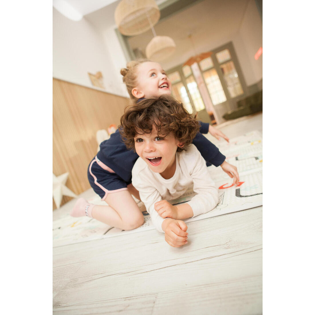 Un tapis d'éveil pliable. Côté pile, des dessins pour éveiller votre enfant. Côté face, s'adapte aux salons qui se transforment en salle de jeu. Produit validé par une psychomotricienne.
