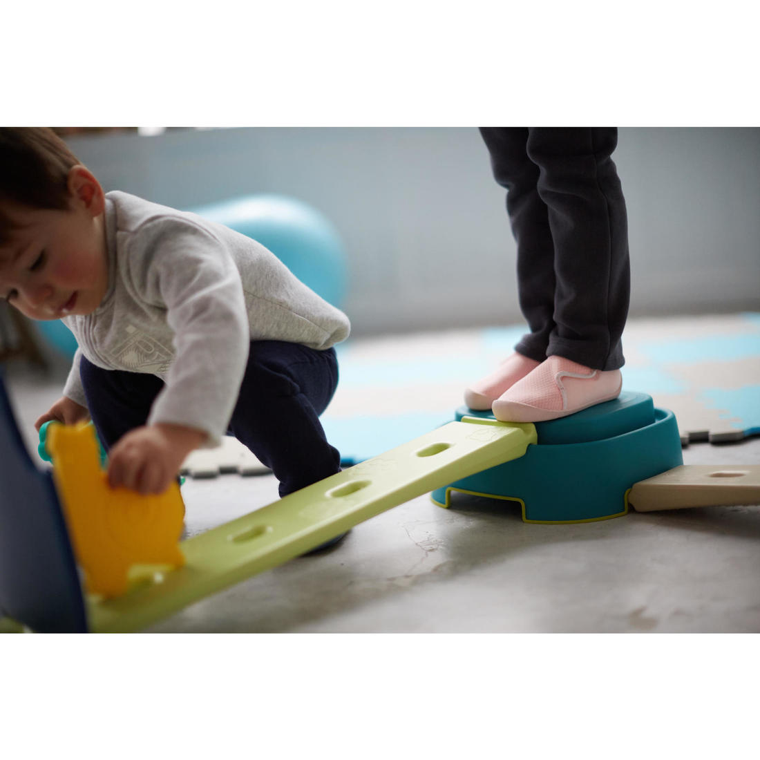 Les premiers chaussons de baby gym ! Souples et antidérapants, ces chaussons aident à ne pas glisser des modules du parcours d'éveil sportif.
