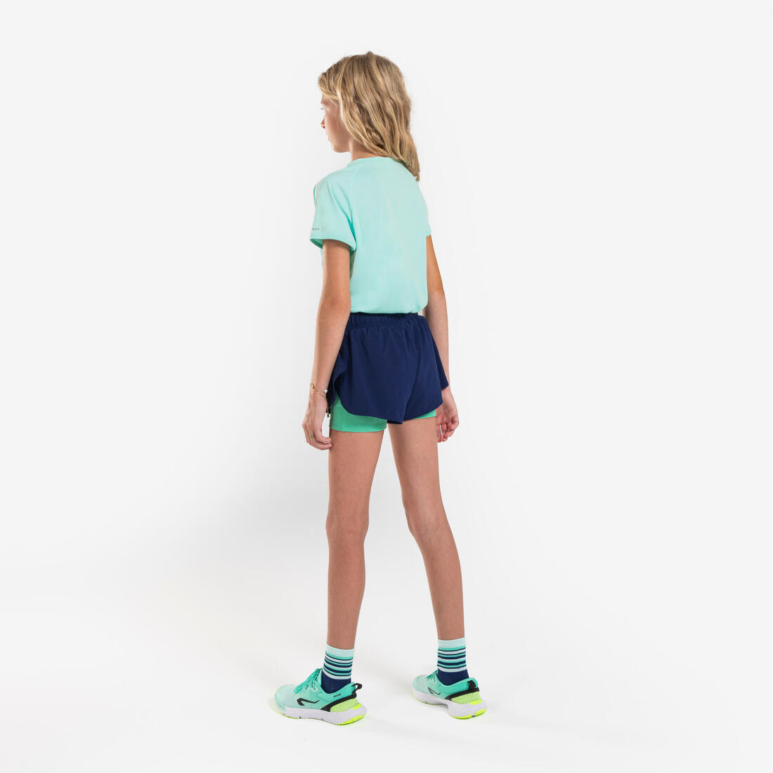 Short cuissard de running respirant Fille - KIPRUN DRY+ 2 en 1 marine et