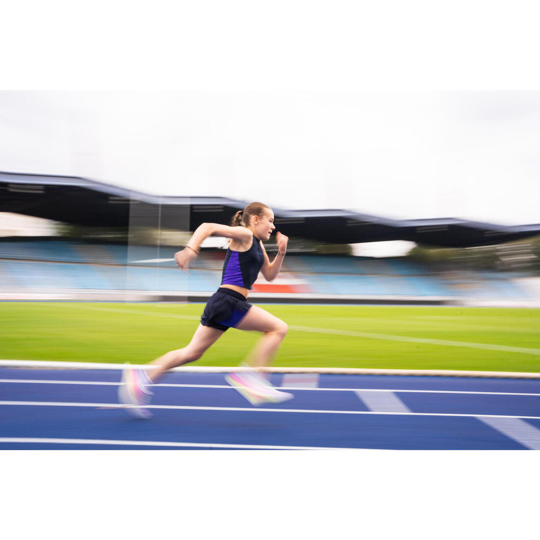 Notre équipe de conception a développé ce short cuissard 2en1 pour les filles qui pratiquent le running ou l'athlétisme par temps chaud en club ou à l'école.