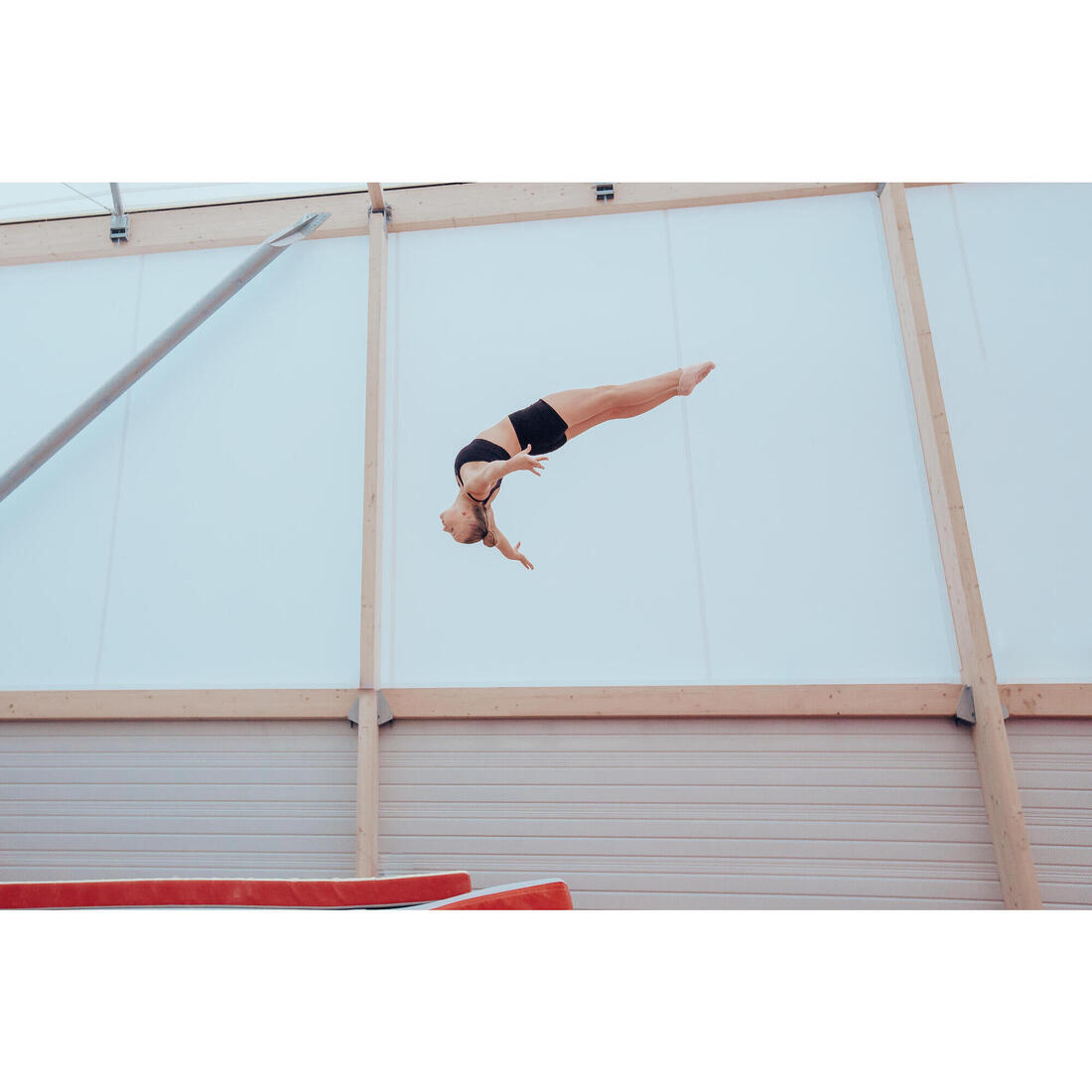 Le conseil de notre équipe conception : le parfait équipement de la gymnaste en entraînement sera un justaucorps sans manche, un débardeur ou une brassière ainsi qu'un short ou un legging. Cela lui permettra d'effectuer ses éléments de gymnastique en toute confiance et liberté afin de pouvoir mettre un pied par la suite sur les plateaux de compétition.