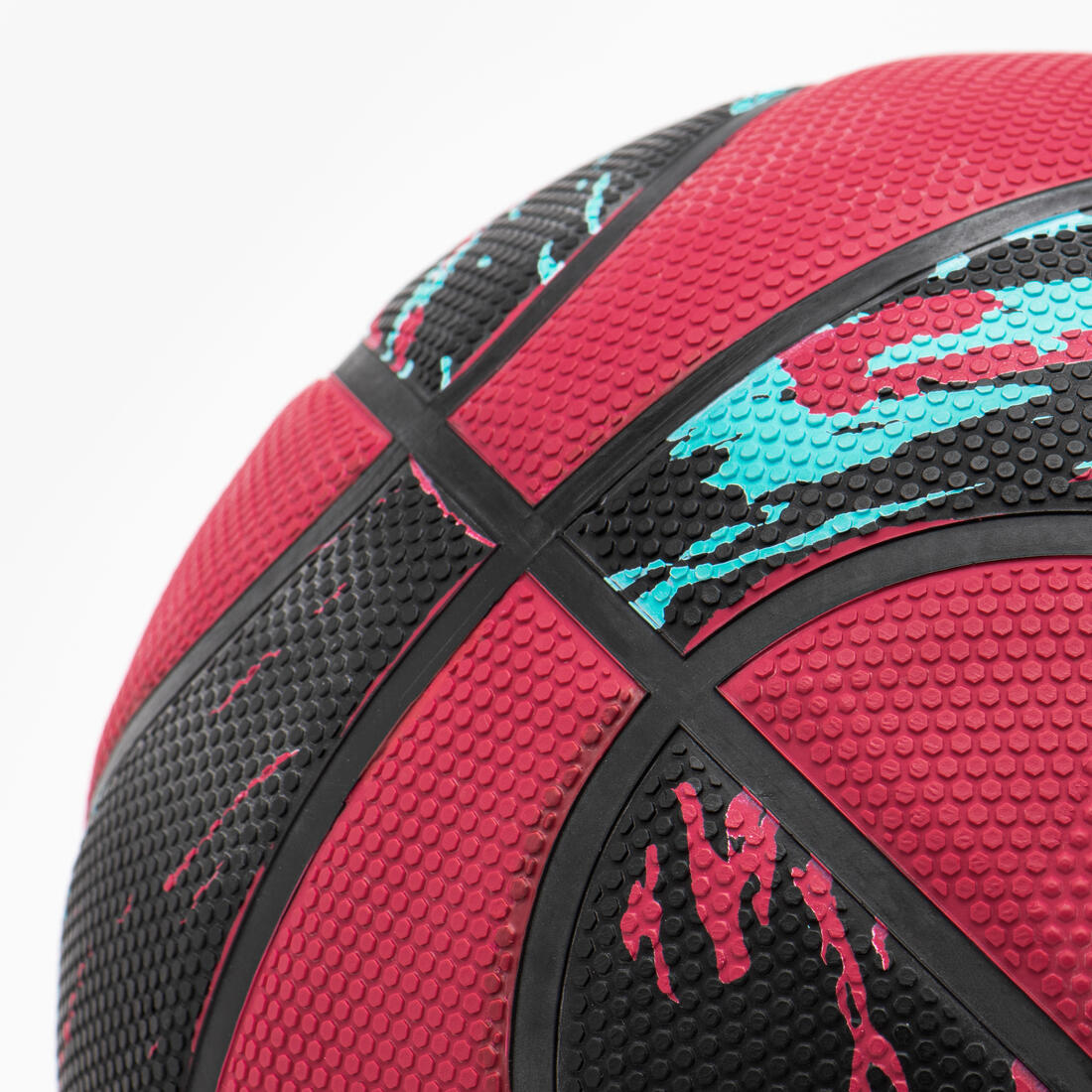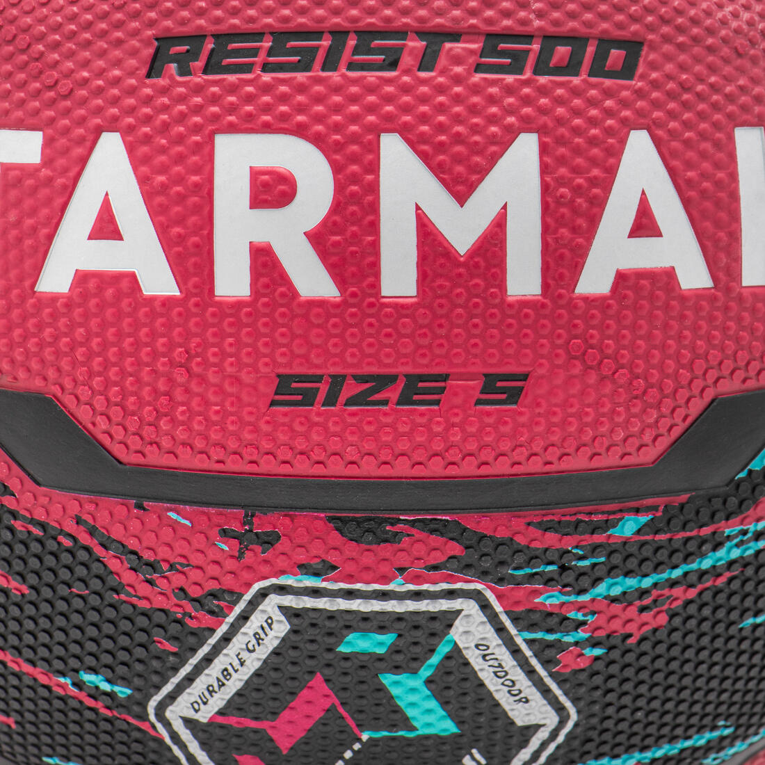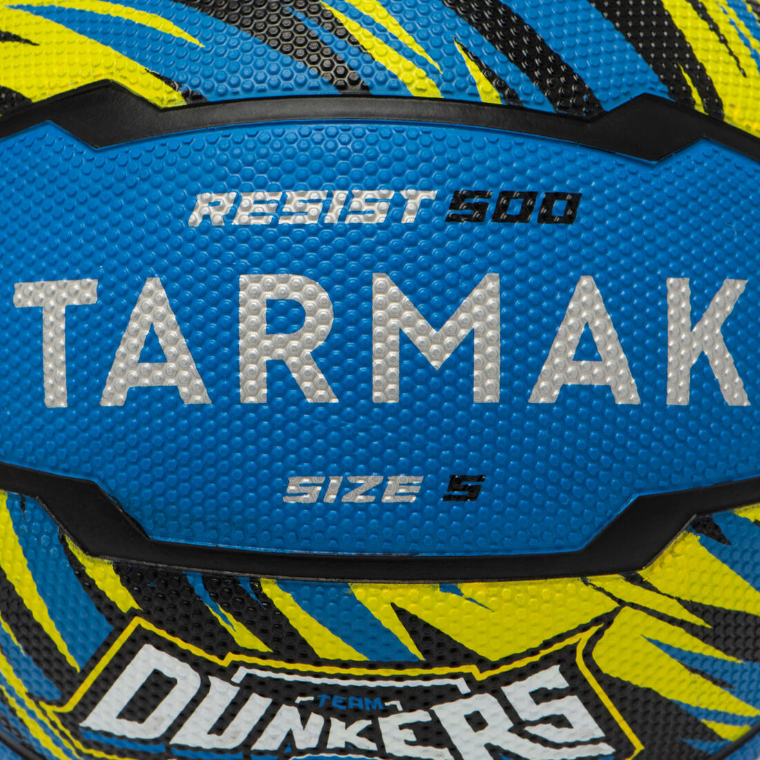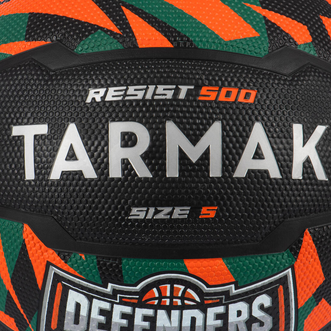 Le ballon de basket Tarmak R500 est parfait pour débuter. Sa prise en main du ballon est facilitée par le design creusé du revêtement et le grain obtenu sur l'enveloppe extérieure du ballon. En caoutchouc moussé (injection d'air dans le caoutchouc qui lui donne une consistance plus moelleuse), le contact avec le ballon est moins dur. Son enroulement filamentaire composé à 100% polyester lui garantit une bonne qualité de rebond. Très résistant, il peut être utilisé en extérieur ou en intérieur.