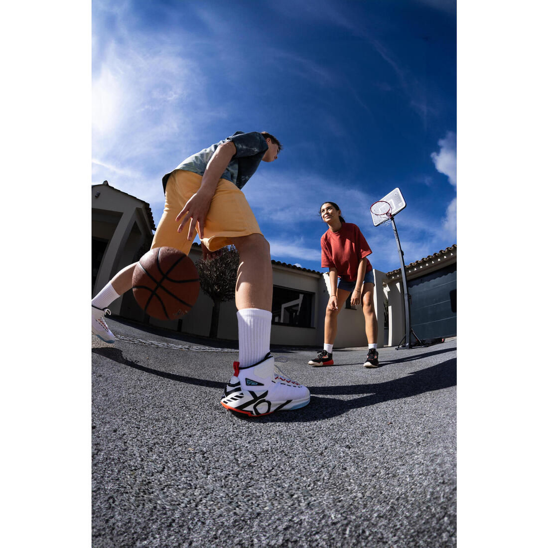 La molette intégrée permet permet de régler le panier sur une multitude de hauteurs de jeu entre 2,40m et 3,05m ! Idéal pour progresser à tout âge.
