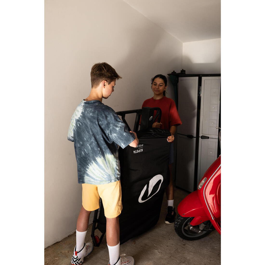 La technologie BOX est une innovation Tarmak avec un seul objectif : ranger facilement le panier après usage pour libérer de la place. La promesse du B100 box : le déployer et le compacter en moins d'une minute chrono. Le poteau se plie et s'incline, tandis que la planche se rabat dans l'alignement de la base pour se ranger sous la housse de protection et ainsi faciliter le stockage. Construisez votre propre playground sans encombrer votre jardin.