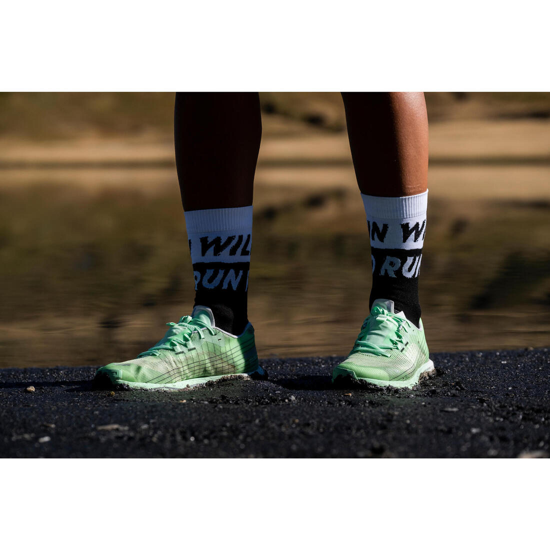 Concernant le laçage, nos équipes ont longuement travaillé sur un système amélioré de rangement des lacets. Sécuriser vos lacets dans une poche permet tout simplement d'éviter qu'ils ne se desserrent, ou qu'ils ne s'accrochent dans les branches ou la végétation basse. La particularité de cette poche extensible et solide ? Son ouverture n'est pas en haut, mais en bas, à l'avant de la chaussure de trail. De cette manière, le lacet est mieux réparti dans sa poche.
