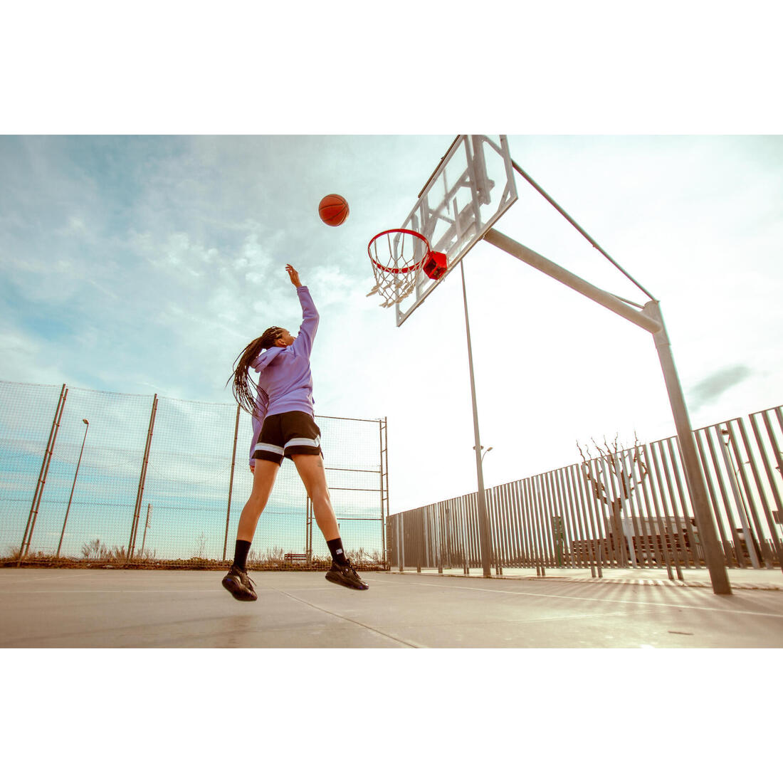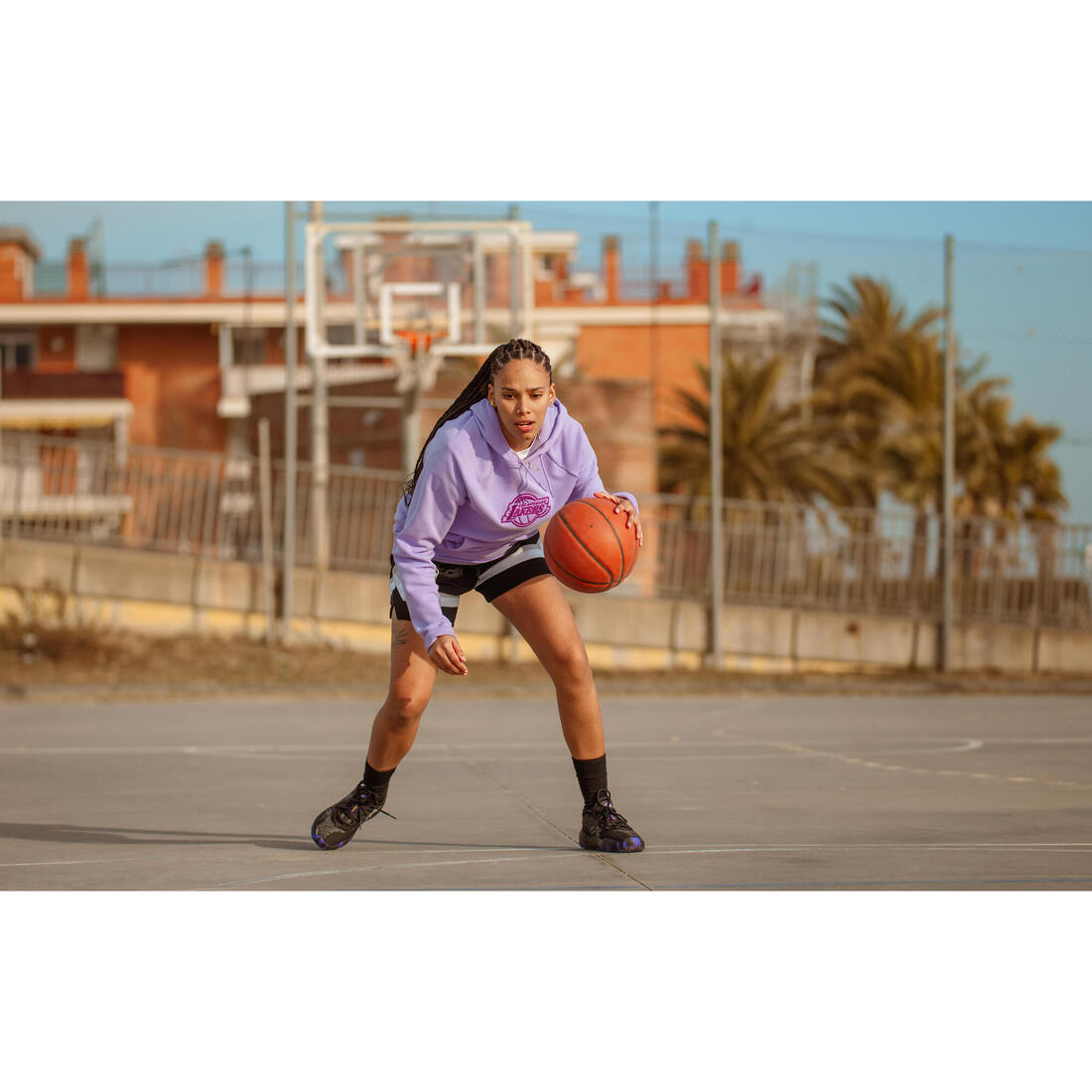 Nous vous recommandons d'essayer la chaussure avant le premier entraînement, et de prendre votre taille habituelle pour la pratique du basketball. N'hésitez pas à monter d'une taille si vous vous sentez juste. Il doit rester environ 1 cm entre votre orteil et le bout de la chaussure, car le volume et la longueur de votre pied auront tendance à augmenter pendant l’effort. Pour finir, optez pour une chaussette conçue pour le basketball limitant les frottements dans les zones les plus sollicitées.