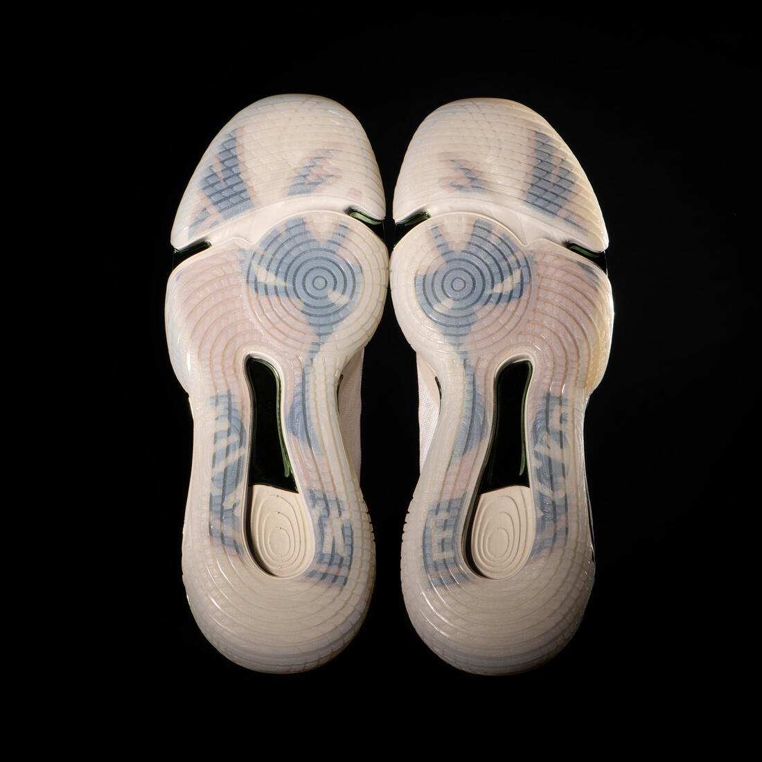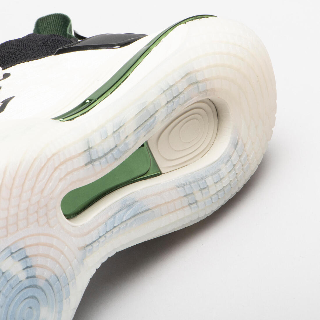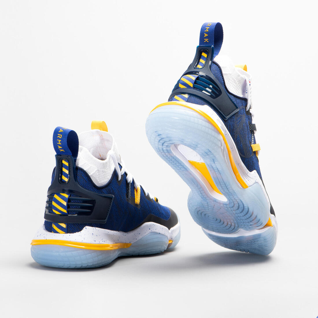 La chaussure de basket SE900 est la plus technique de toute la gamme TARMAK. La semelle de notre chaussure intègre un concept intégrant une plaque anatomique à la fois légère et rigide en TPU (Polyuréthane Thermoplastique) polymère aux performances supérieures, située entre 2 couches de mousse EVA hyper réactives et aux propriétés bien distinctes : une couche supérieure plus rigide et une couche inférieure plus souple. L'association des 2 vous procure à la fois amorti, stabilité ma