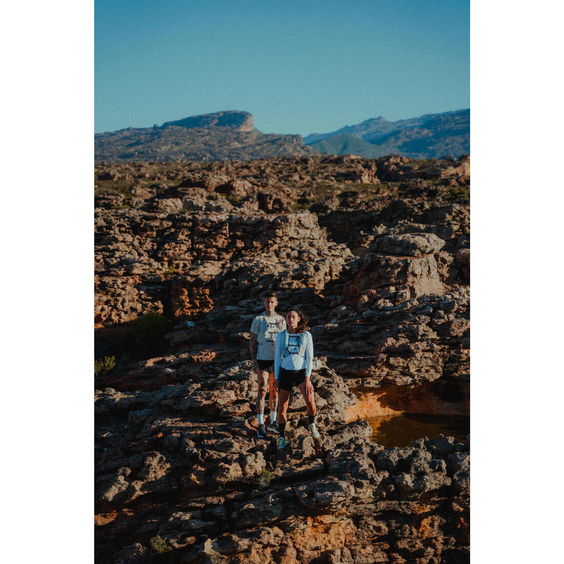 MT, deux lettres pour parler de la montagne, la bien-aimée du traileur. Des chaussures pour la montagne, donc, mais pas que : elles conviennent à tous les terrains, du rocher à la boue, en passant par les sentiers secs. “Il faut s'imaginer courir sur un coussin léger, doux et moelleux. La MT CUSHION 2 est une chaussure qui protège et maintient”, raconte Thierry, chef de produit. CUSHION signifie amorti/coussin, pour une pratique agréable et confortable, synonyme de plaisir et de performance !