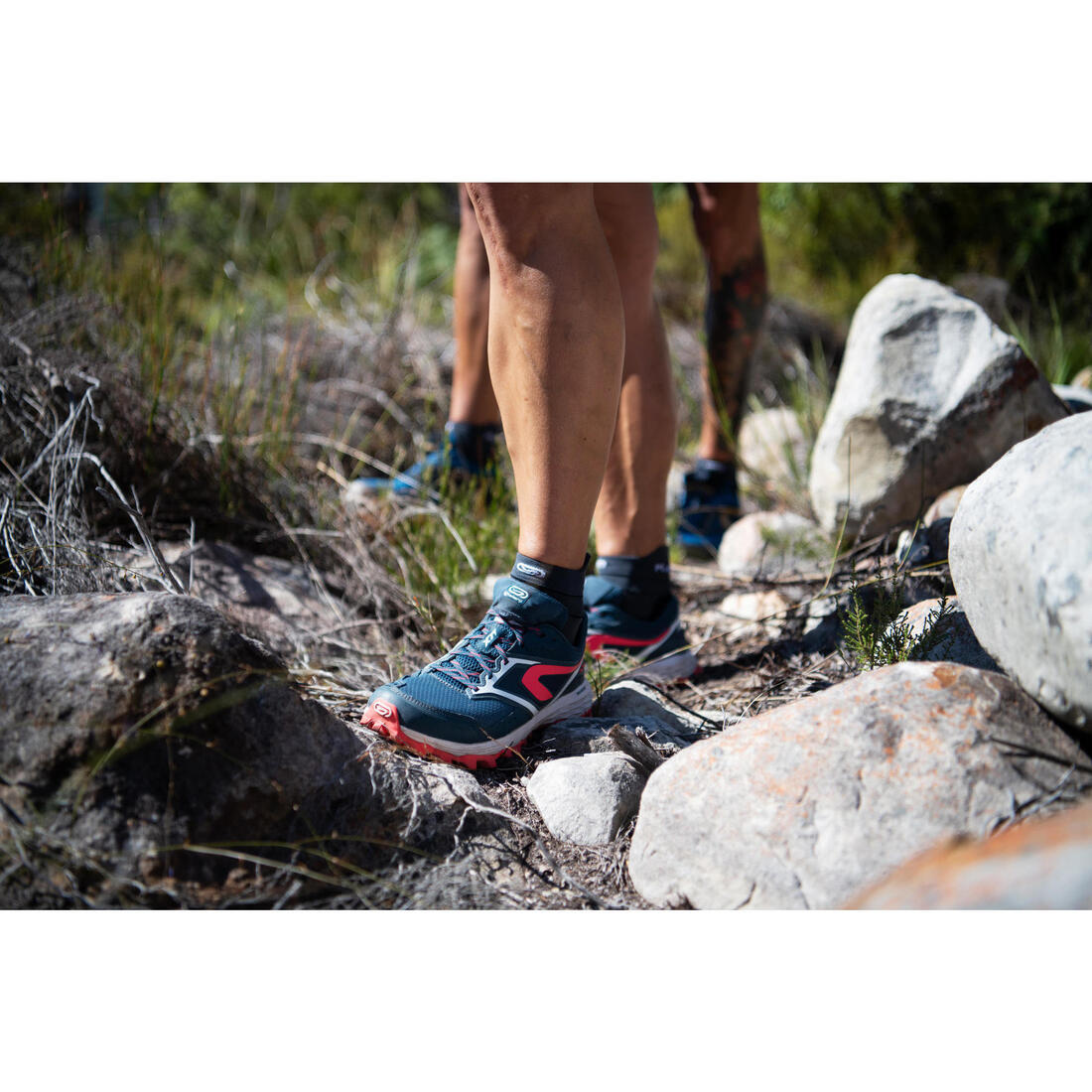 Quand on court en pleine nature pendant des heures, on attend de ses chaussures un maximum de maintien ! C'est pourquoi nous avons ajouté une bande de PU soudée au mesh sur l'arrière et les côtés la chaussure, pour entourer votre pied. Résultat : quand vous tirez sur vos lacets, votre chaussure enserre votre pied pour un encore plus de maintien.