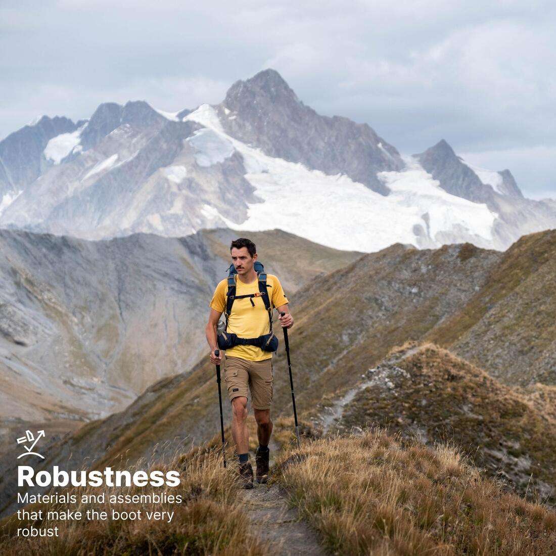 L'adhérence et l'accroche de nos semelles sont labellisées VIBRAM®. En moyenne montagne, les conditions et les types de terrains peuvent changer rapidement. Les semelles se doivent d’être polyvalentes pour affronter à la fois les pierres, ne pas glisser sur ces surfaces et également pouvoir accrocher dans les montées/descentes devenues boueuses. Son design de crampons a été spécifiquement travaillé en collaboration avec notre équipe R&D et le savoir faire de VIBRAM. Testé, c'est approuvé !.