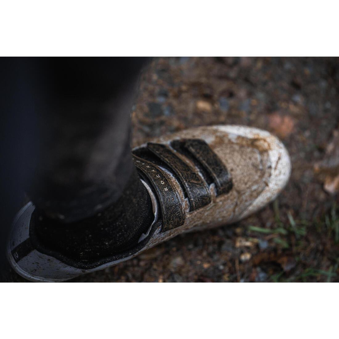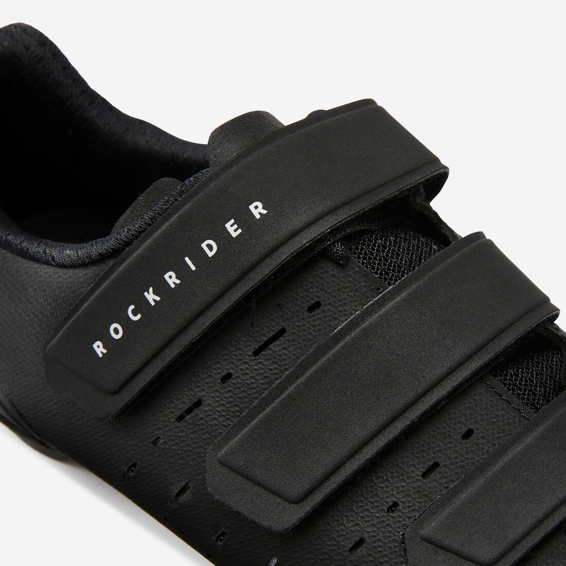 Chaussures de VTT sportives grâce à un très bon maintien (talon, coup-de-pied, serrage 3 velcros) et une semelle rigide dotée de solides crampons pour une bonne adhérence sur tous les sols.