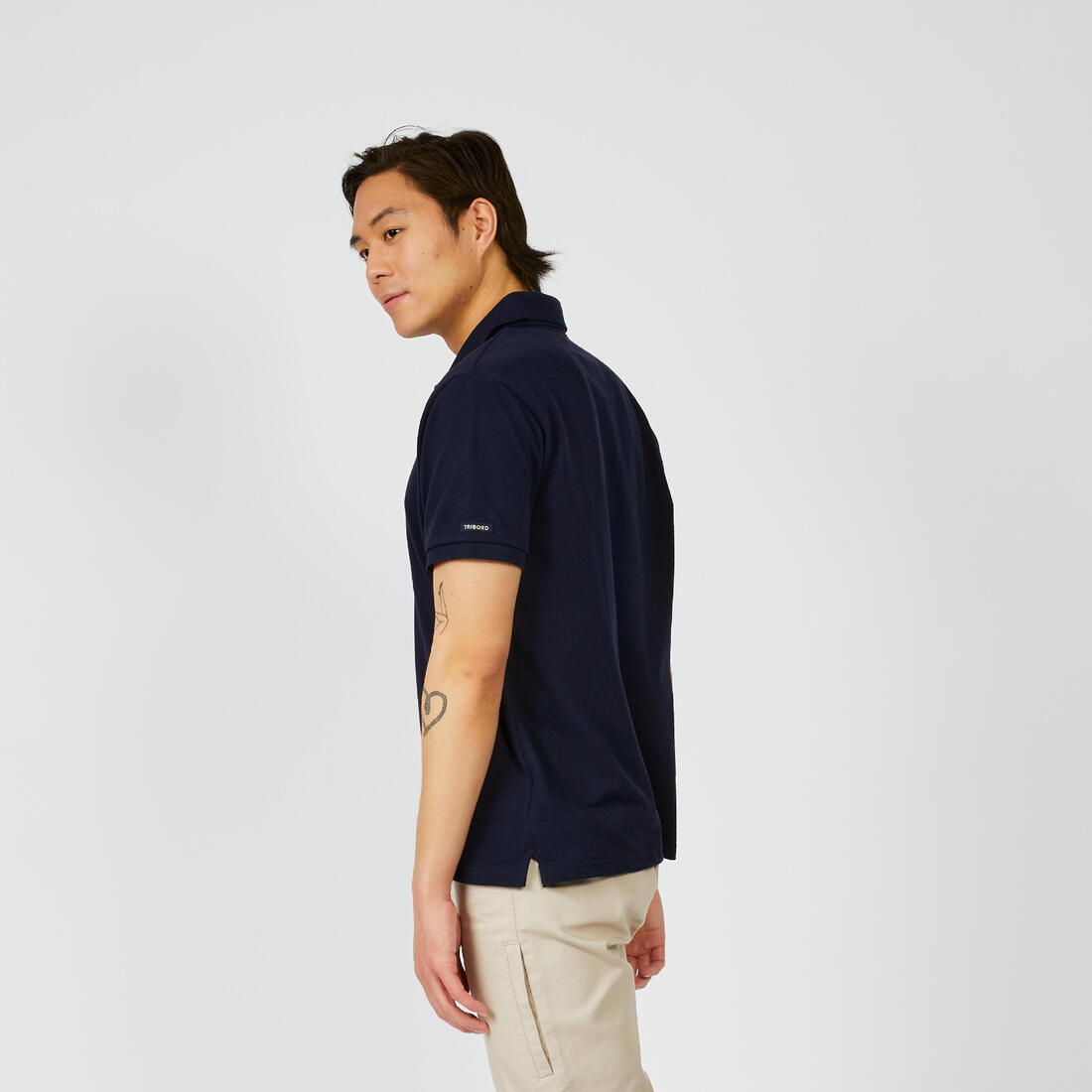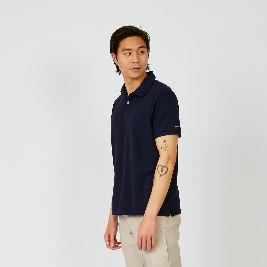 Ce polo marin homme en maille piquée, aérée, léger et extensible vous accompagnera dans vos navigations. Son tissu alliant coton et polyester facilite l'évacuation de la transpiration
