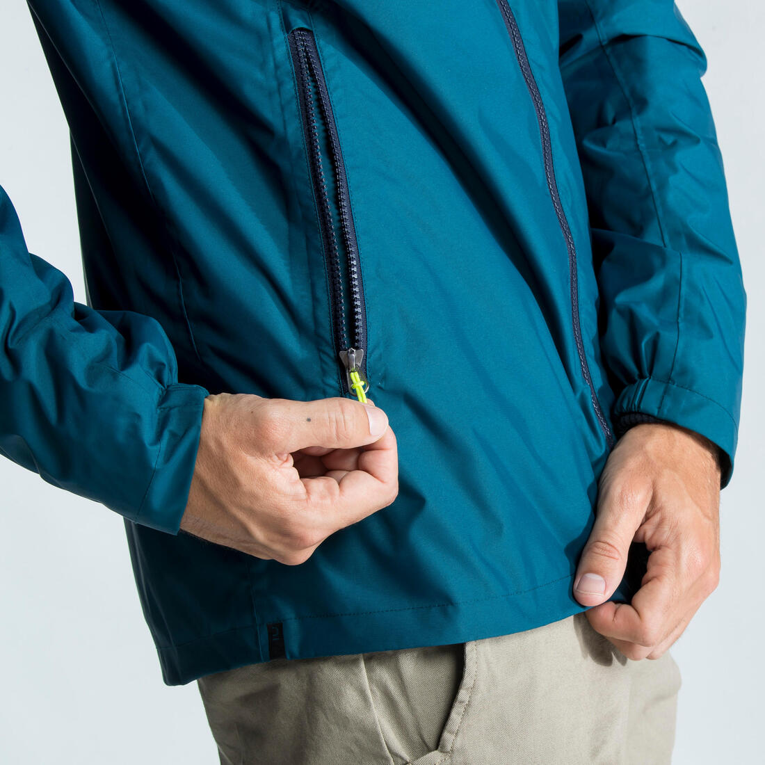 Utilisation d'un zip sur toute la longueur avec un rabat intérieur et une gouttière permettant de protéger du vent et de l'eau. Rabat en tissu doux en haut du col pour protéger le menton.