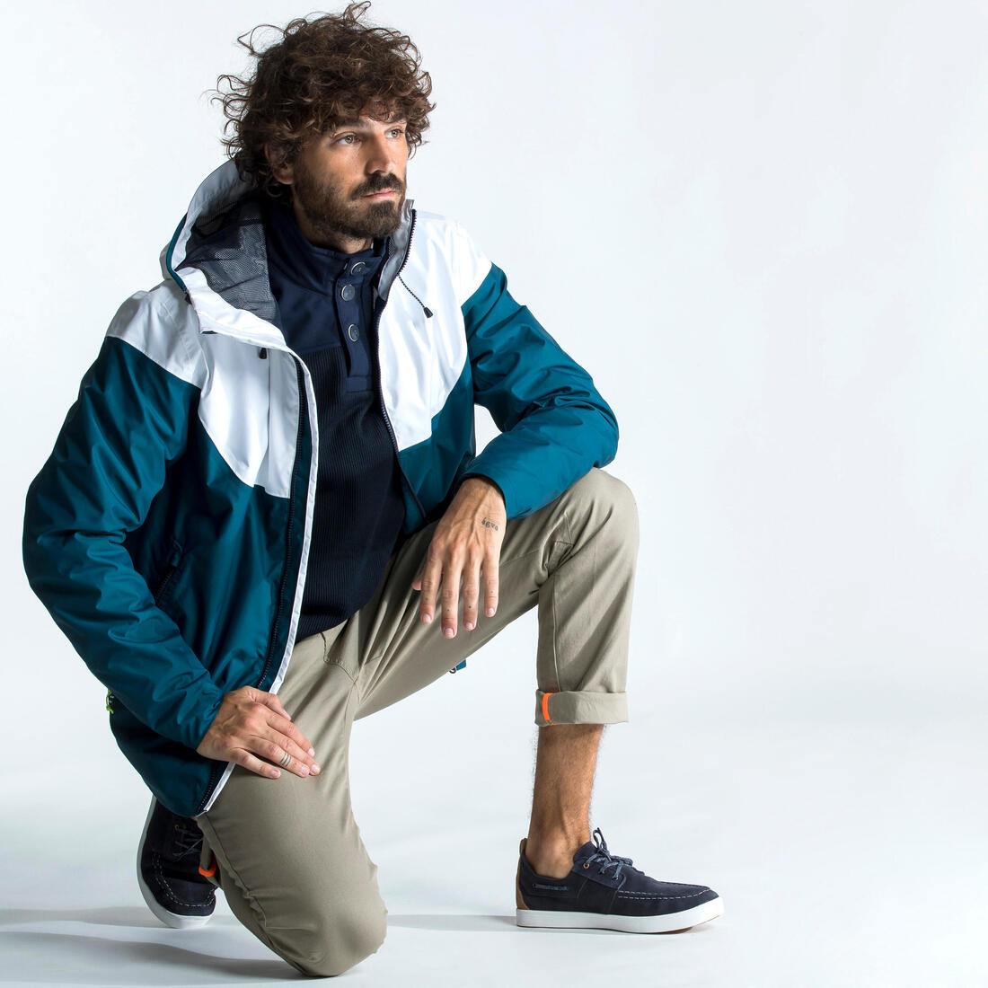 On mesure la résistance d’un tissu à une pression d'eau exprimée en mm de colonne d'eau (test basé sur la norme JIS). Plus la pression est élevée, plus le tissu est imperméable. Sur notre veste sailing 100 : Composant résistant à une pression d'eau de 5000mm Schmerber (norme JIS). Cela équivaut à la pression moyenne exercée par l'eau lors d'une averse. L'imperméabilité de la veste a été testée sous une pluie de 60 litres d’eau/m²/heure pendant 2h