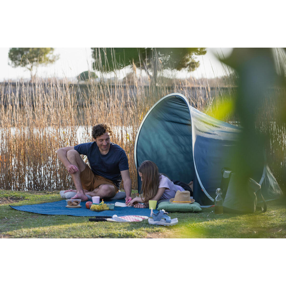 Notre équipe de campeurs a conçu cet abri 2 Seconds pour un adulte ou deux enfants. Il permet de s'abriter du soleil, d'un léger vent ou de s'isoler du sol.