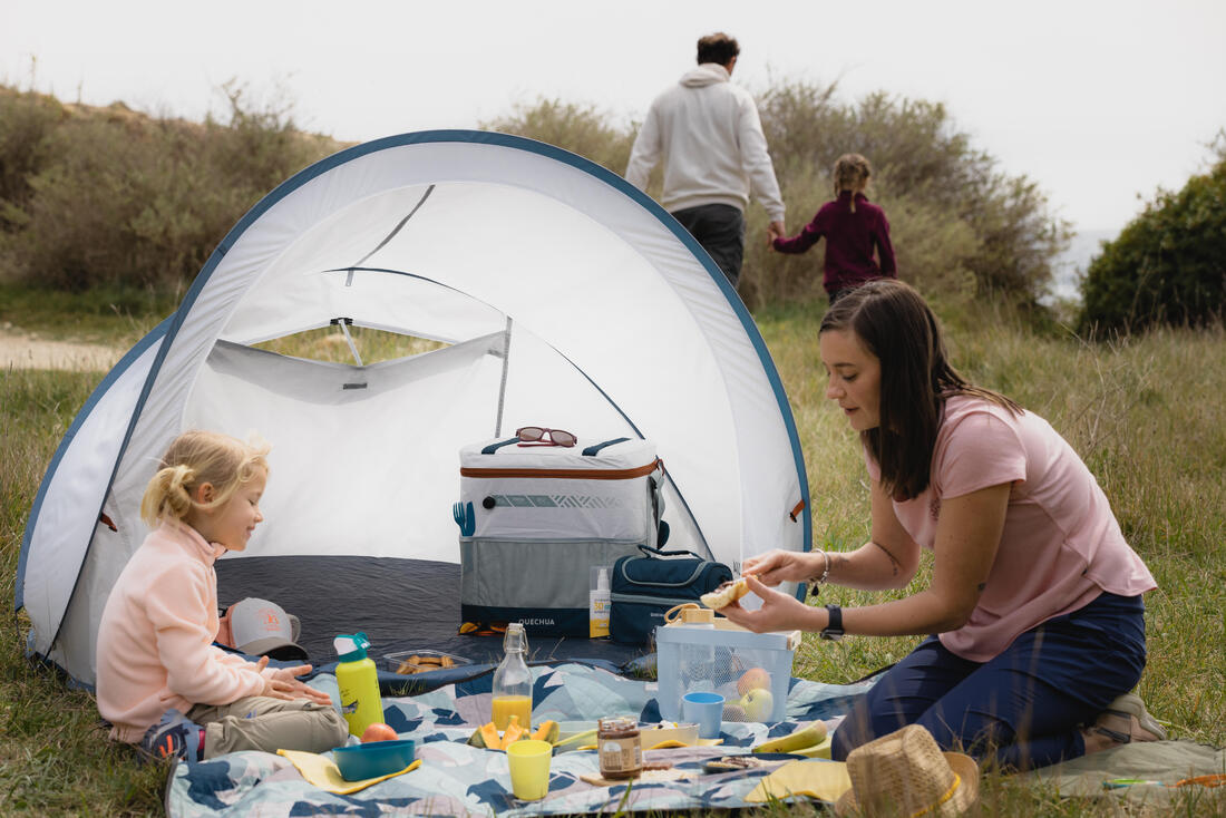 Nos concepteurs campeurs ont conçu cet abri 2Seconds Fresh pour 2 adultes. Il permet de s'abriter des rayons du soleil, d'un léger vent et de s'isoler du sol.