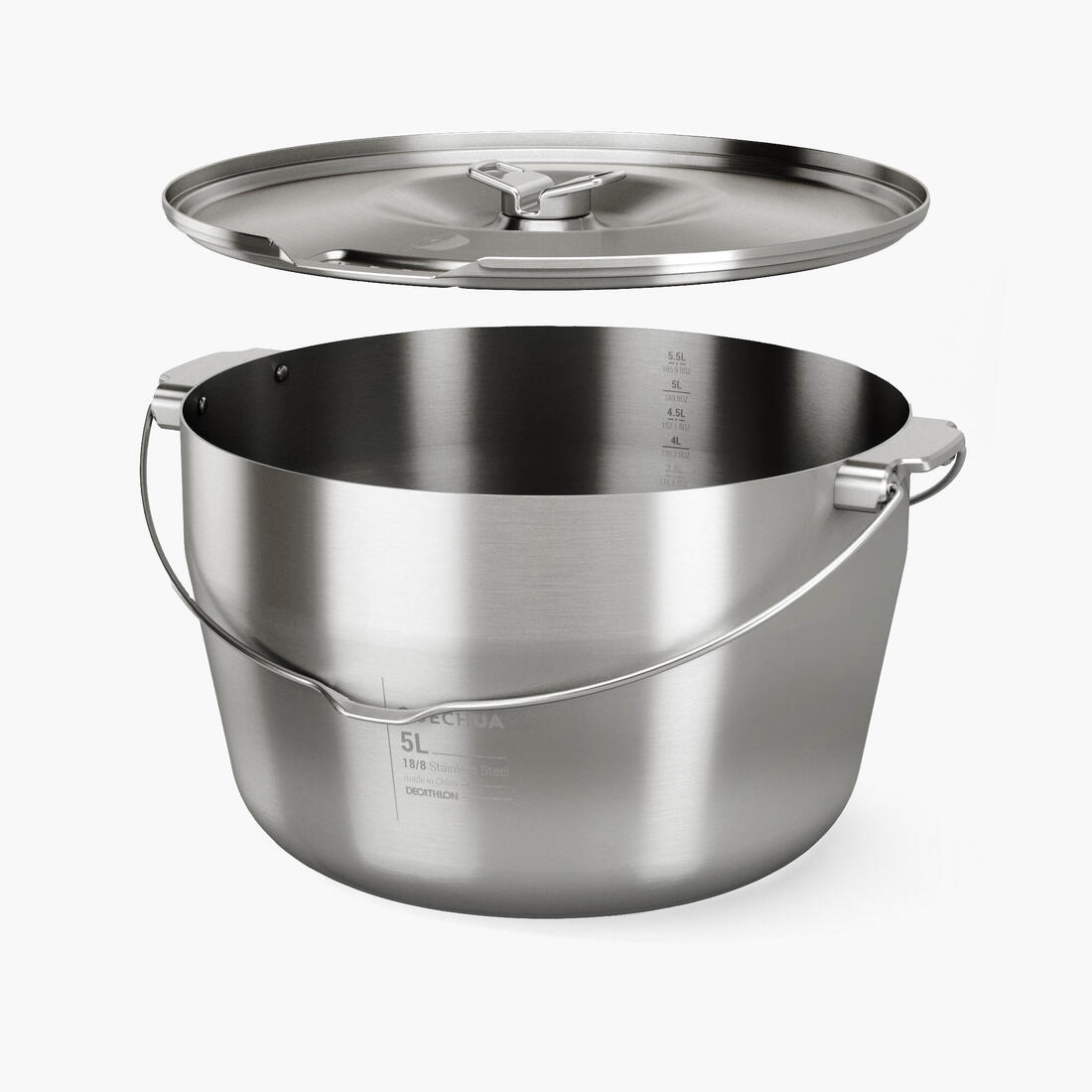 Faitout feu de camp pour 6 personnes en camping - acier inoxydable - 5 litres