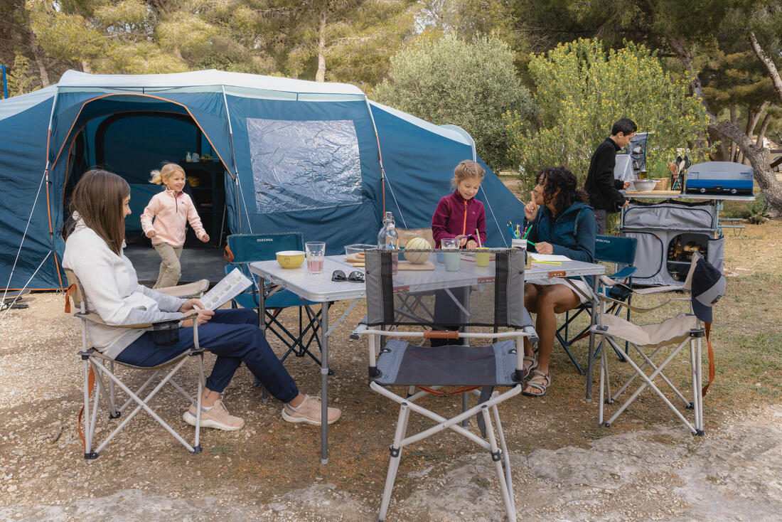 Cette table pliante de camping, 6 à 8 personnes, est conçue pour être compacte et solide afin de vous accompagner lors de vos vacances en famille ou entre amis.