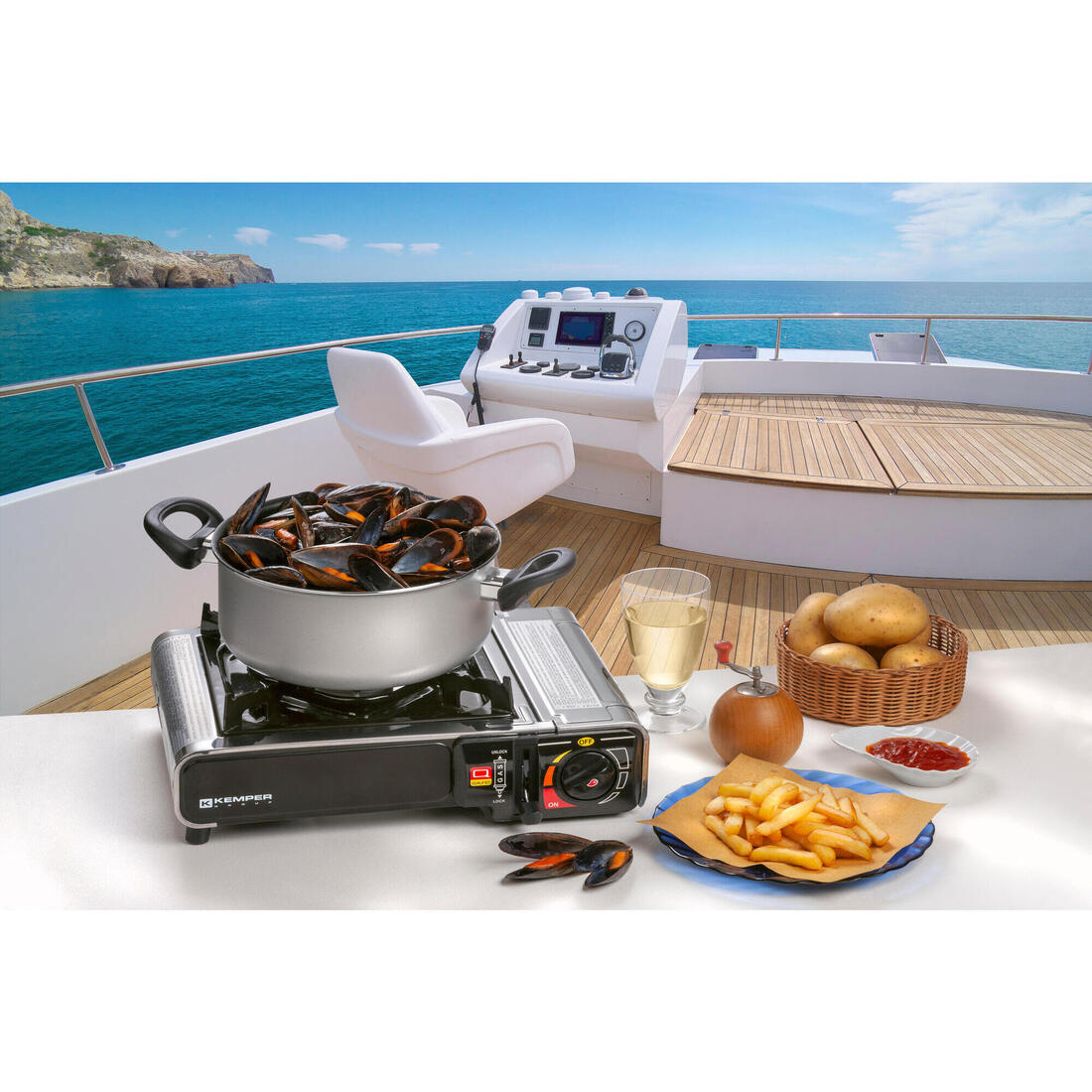 Un réchaud gaz stable et facile à utiliser et à transporter. Dessus en acier inoxydable pour la résistance et un nettoyage facile. Allumage piezo. Respecte les normes de sécurité les plus exigeantes.