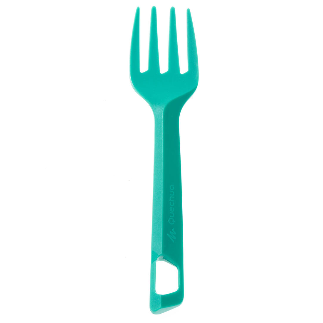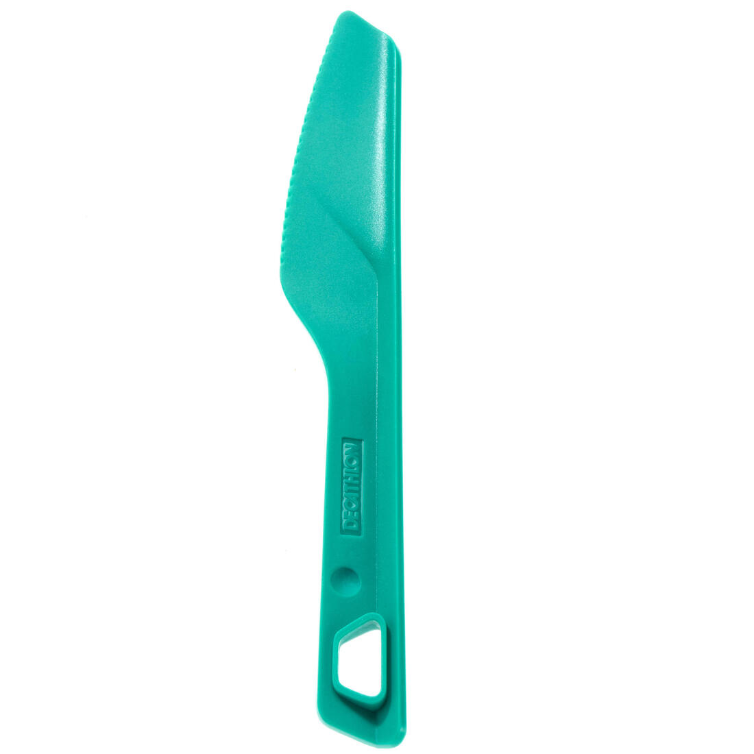 3 couverts (couteau, fourchette, cuillère) très légers et résistants en plastique (polyamide) qui peuvent se clipser entre eux.