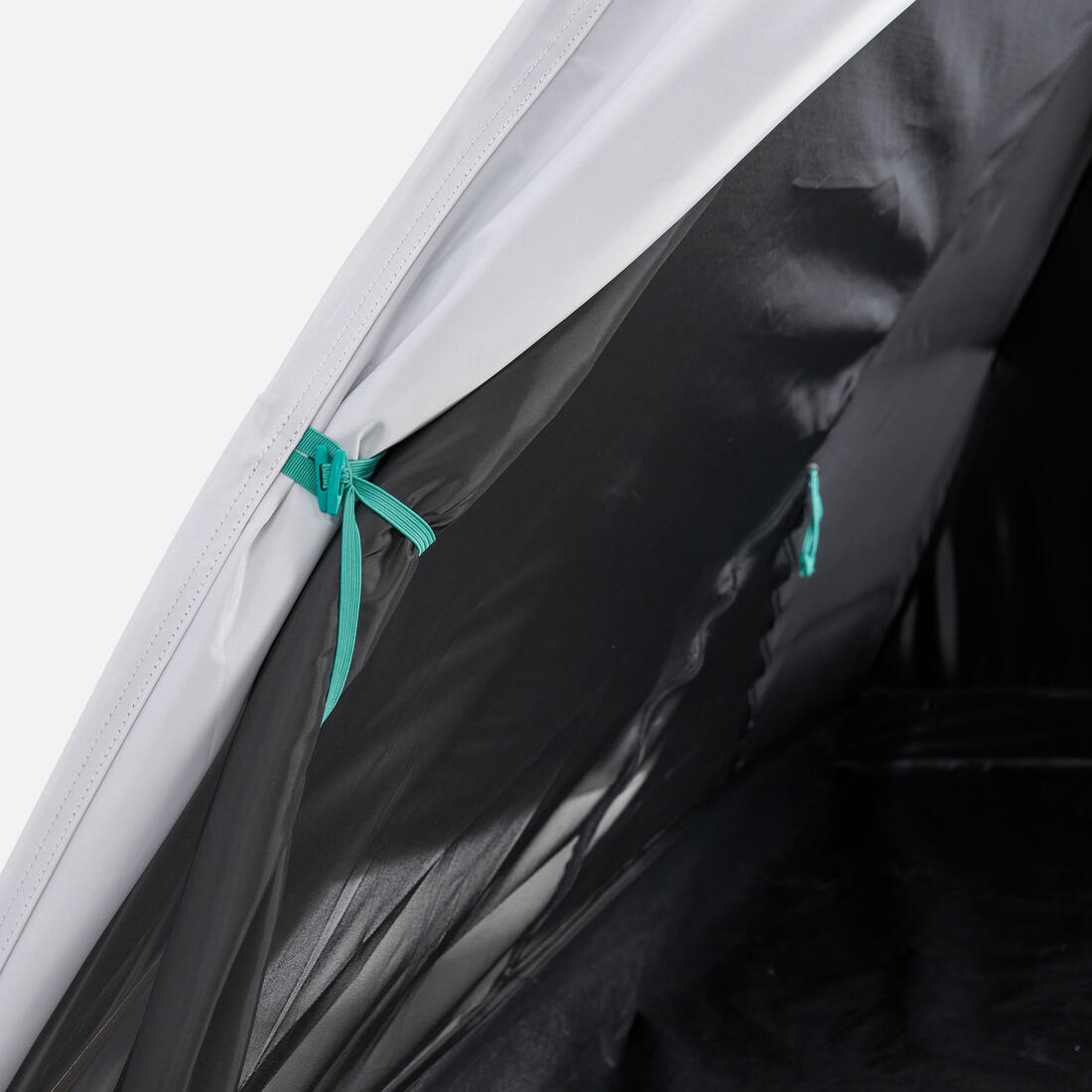 Pour permettre à l'air de circuler et d'être renouvelé entre la chambre et le double toit et limiter au mieux le phénomène naturel de condensation, la tente dispose de 2 aérations sur le haut et 2 ventilations mécaniques latérales.
