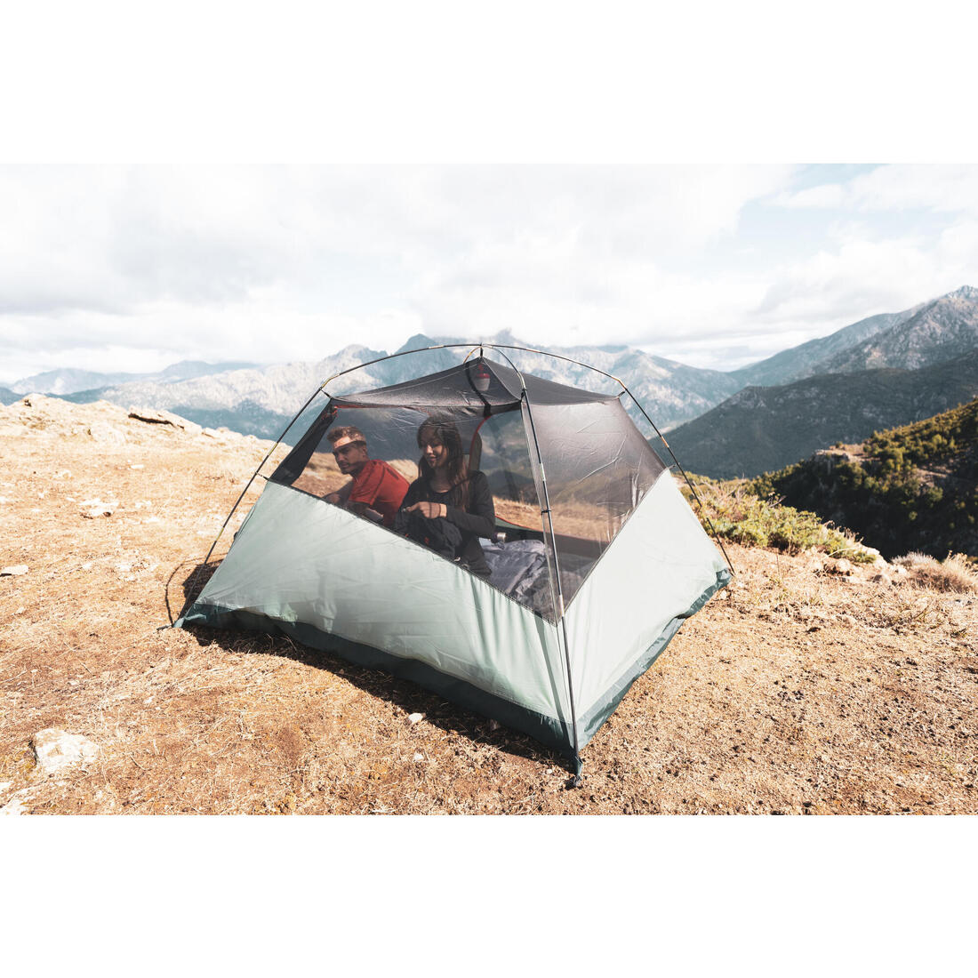 Tente conseillée avec matelas autogonflants ou matelas de trek de 70 cm de largeur maximum. Nous déconseillons l'usage de matelas gonflables de plus de 8 cm d'épaisseur dans cette tente. En effet, cela diminue fortement le volume à l'intérieur de la tente et favorise la condensation à l'intérieur.