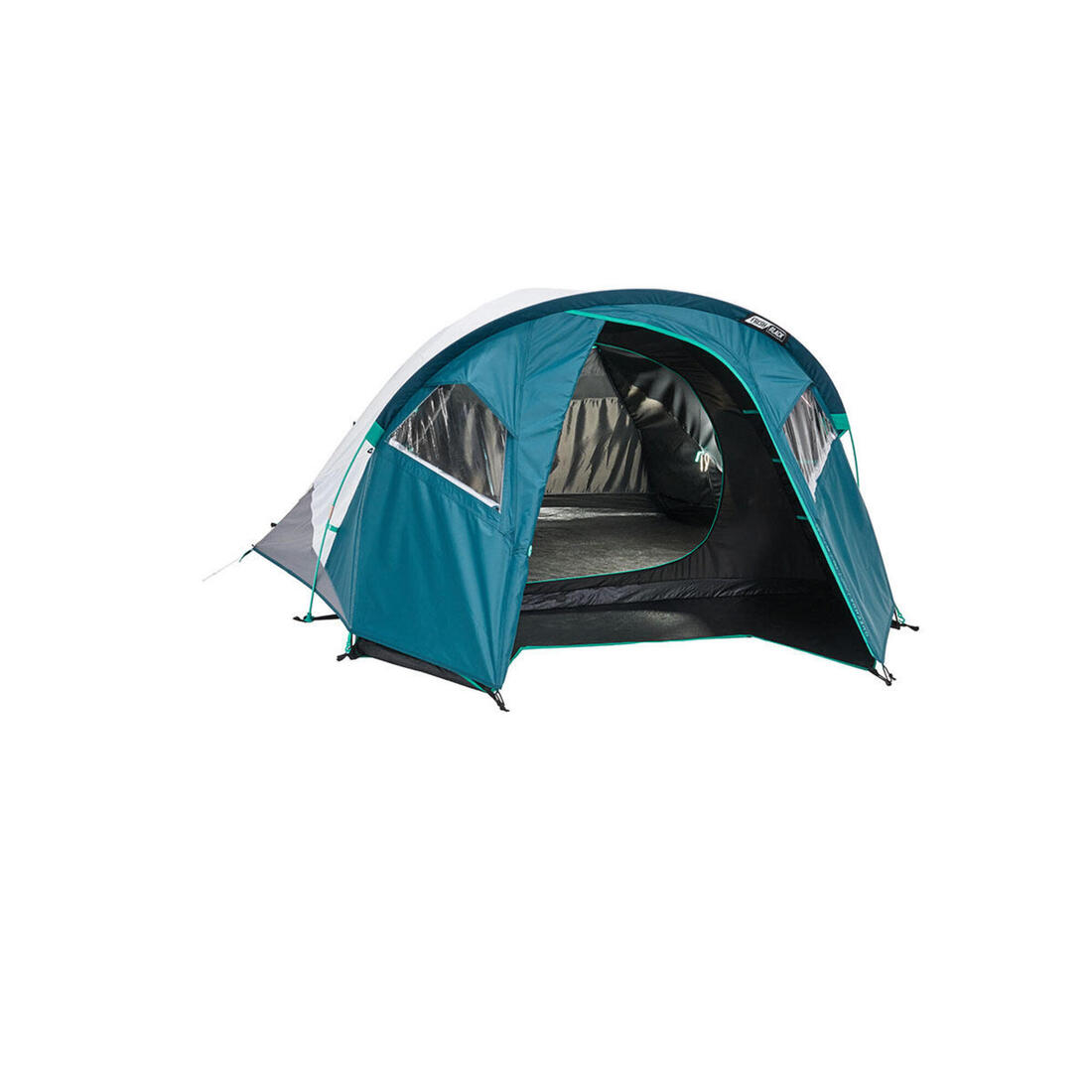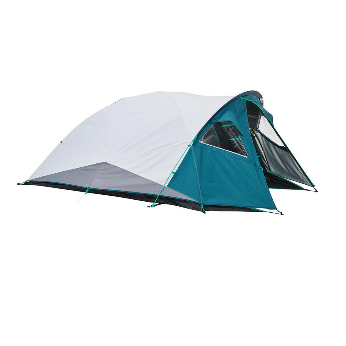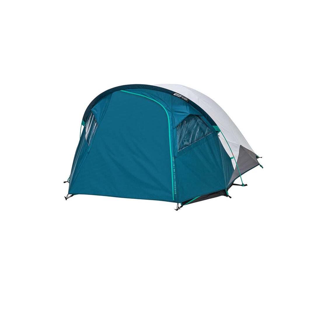 - 1 chambre - 1 double toit imperméable - 3 arceaux (2 arceaux noirs pour la chambre et 1 arceau turquoise pour le double toit) - 12 sardines - 4 haubans - 1 housse