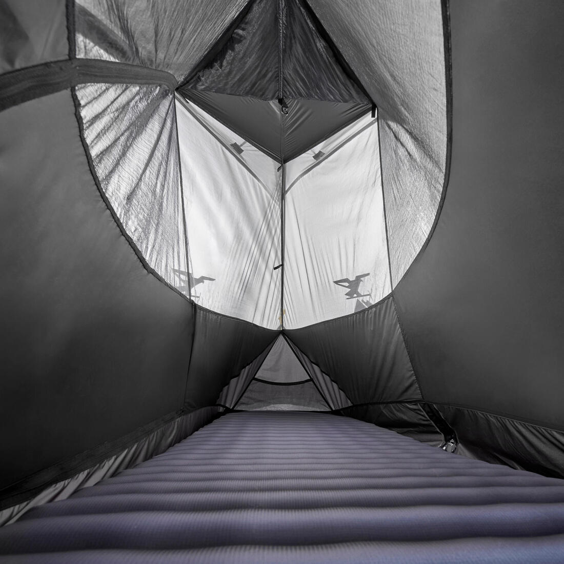Avec sa structure dôme en Y, la tente MT900 1 place propose une habitabilité optimale ainsi qu'une abside permettant de protéger votre sac à dos jusqu'à 50-70L.