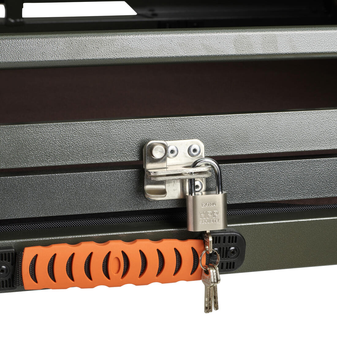 Point de vue sécurité, la caisse est très résistante en cas de choc ou de chute. 2 accessoires viennent la sécuriser lorsque vous roulez avec dans le coffre de votre voiture : des sangles, au nombre de deux, permettent d'accrocher la caisse à des crochets hauts ou bas si le véhicule en est équipé. Cela permet ainsi à la caisse qu'elle ne bouge pas pendant le transport, et surtout qu’elle ne bascule avec le chien à l’intérieur en cas de choc. A cela s'ajoute un cadenas (livré avec).