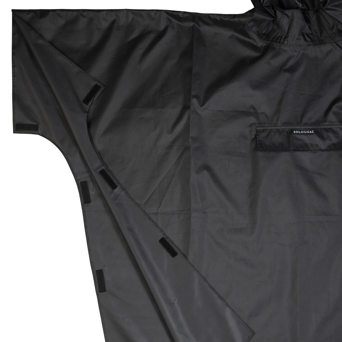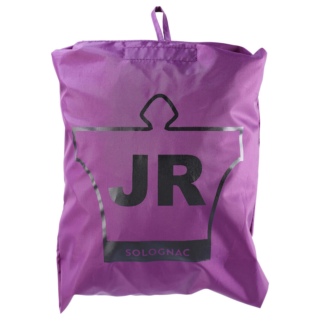 Grâce à sa couple ample, ce poncho peut être porté par dessus une veste ou un pull, ainsi que par dessus un petit sac à dos de 20 litres notamment. Sa surface couvre l'enfant de la tête aux cuisses, et les cordons de serrage facilitent l'ajustement de la capuche à la tête. Lorsque la pluie cesse, vous n'avez qu'à ranger ce poncho dans la poche centrale de ce dernier. Voici les dimensions de cette poche : 23,5 cm X 20 cm