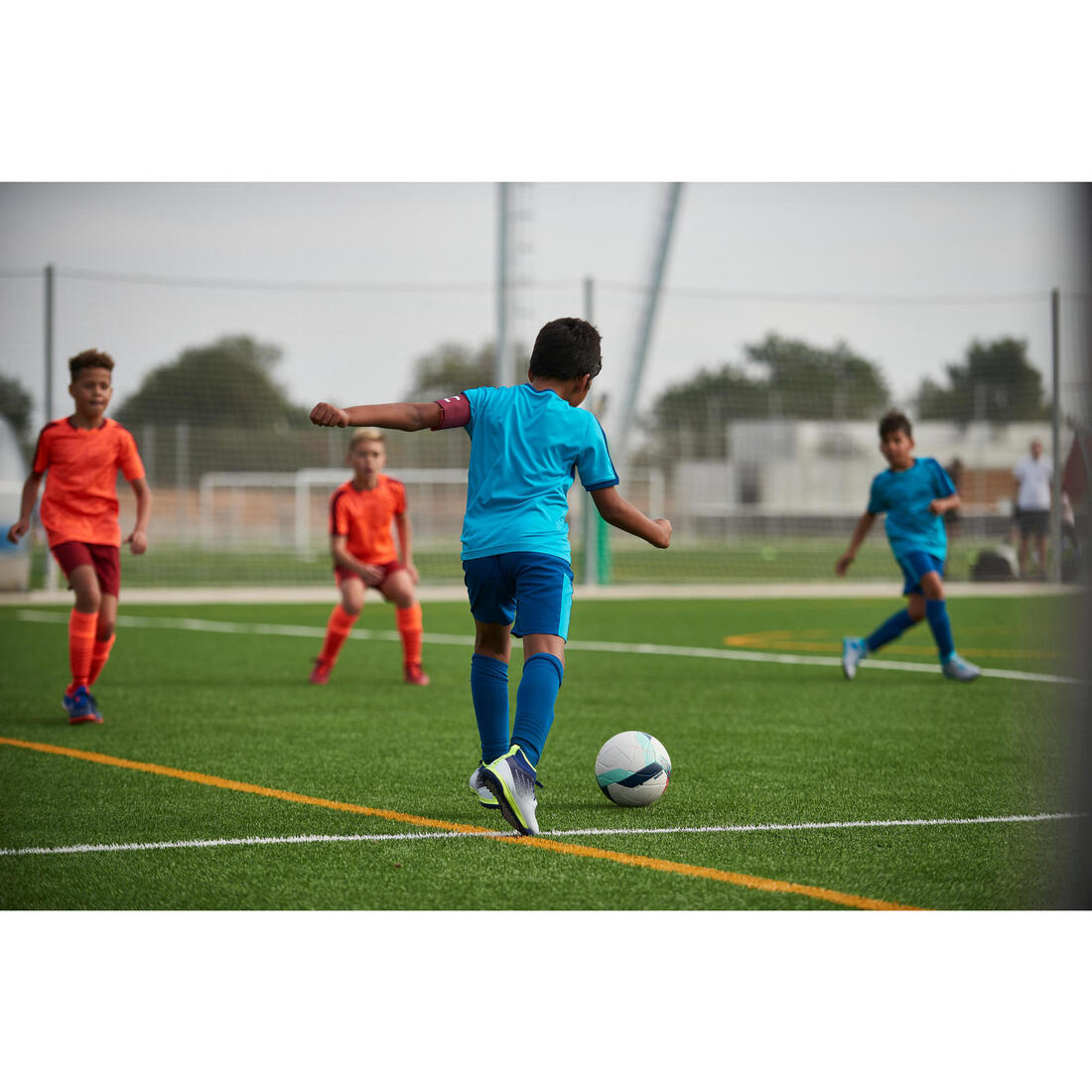 En observant le jeune footballeur confirmé sur les terrains, nos équipes de concepteurs passionnés de football ont constaté l'importance du maintien dedans une chaussette de football.Nos équipes de conception ont donc développé les chaussettes de football F 500 à l'aide d'un fil polyester contenant de l'élasthanne pour éviter les glissements au niveau du mollet. Sans oublier un tissage spécifique et resserré au niveau de la cheville et du coup de pied.