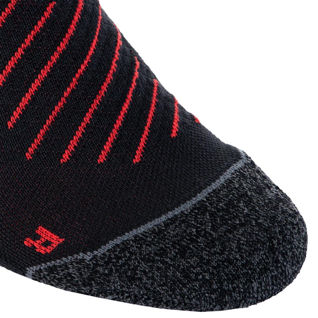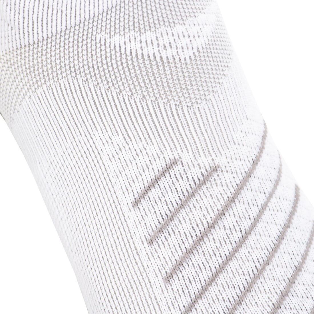 Grâce à ses bandes de silicones situées sous l'avant du pied, ces chaussettes antidérapantes "mi-mollet" favorisent les changements d'appuis et les bonnes sensations en phase de poussée.