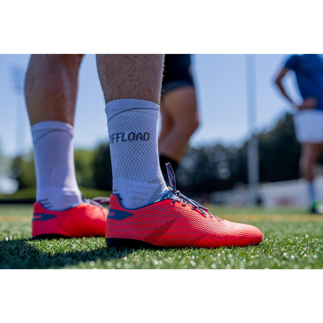 Nos équipes ont développé ces chaussettes de rugby pour éviter que le pied ne glisse dans la chaussure. Entraînements et matchs (3/4 fois par semaine).