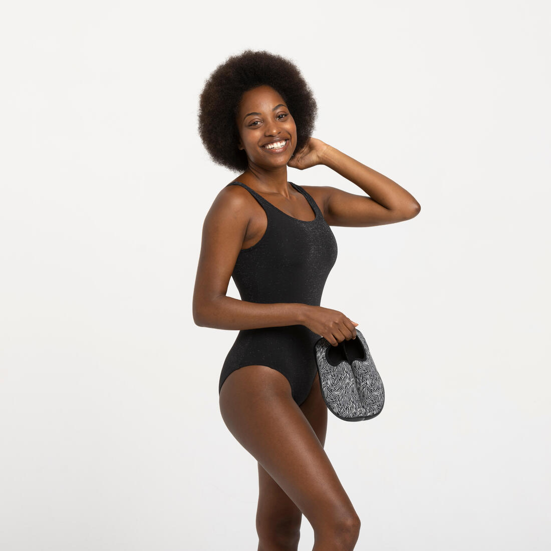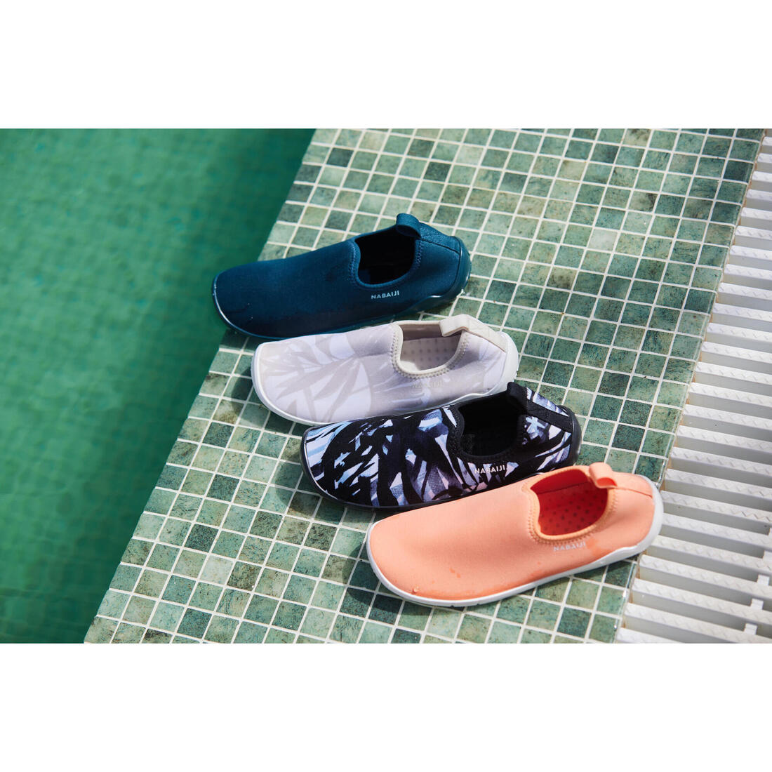 Notre équipe de conception a développé ce chausson en tissu pour la pratique de cours d'Aquagym.