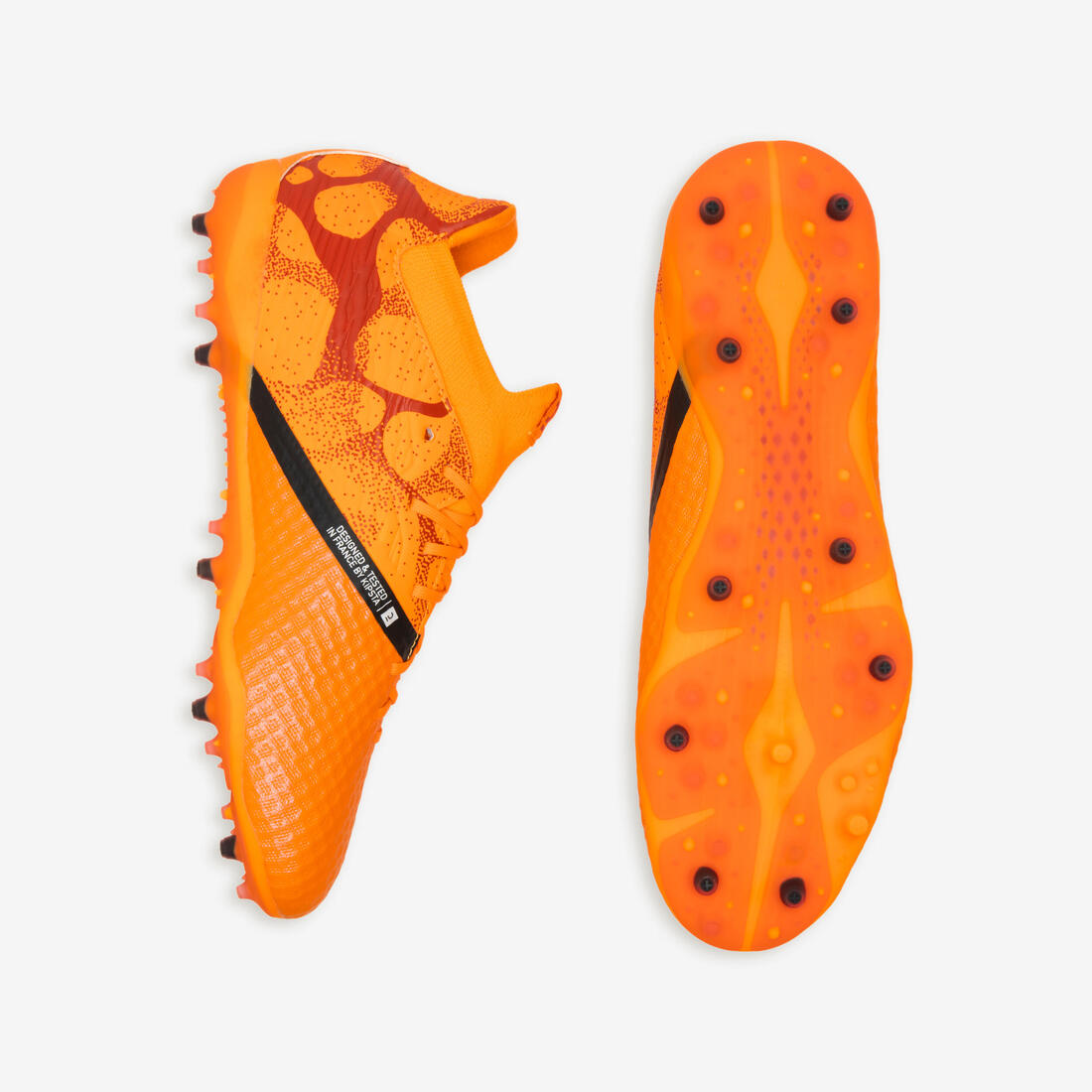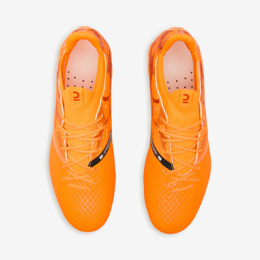 Nous avons développés ces chaussures de foot avec un podologue expert du sport et du football professionnel. Nous avons conçu et validé avec lui les différents concepts, systèmes et technologies, utilisés sur ces chaussures de foot. Sur la semelle extérieure, par exemple, le nombre de crampons, leur forme ronde, et leur positionnement, ont été spécifiquement étudiés pour garantir le meilleur ratio entre confort d'usage et accroche.