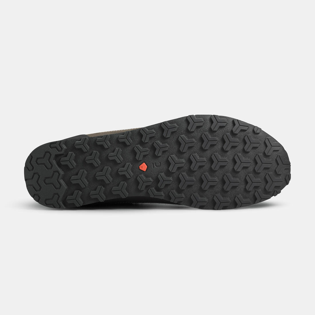 Le design de la semelle a fait l'objet de longues recherches au sein de nos laboratoires. Nous avons privilégié une formulation de caoutchouc spécifique pour optimiser l'accroche et l'adhérence. Nous recherchons systématiquement le meilleur compromis pour évoluer sur sentiers pédestres meubles ou minéraux (type forestier ou littoral). Une utilisation sur route pourra accélérer l'usure de vos chaussures et vous procurer de l'inconfort. Elles ne sont pas adaptées à la randonnée en haute montagne.