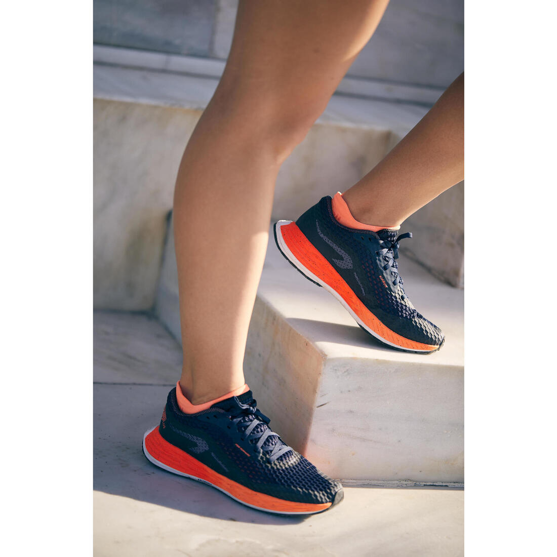 Efficace sur toutes les distances, la chaussure de running femme Kiprun KD 500 vous confère un retour d'énergie puissant pour augmenter la fluidité de votre foulée et améliorer vos performances .
