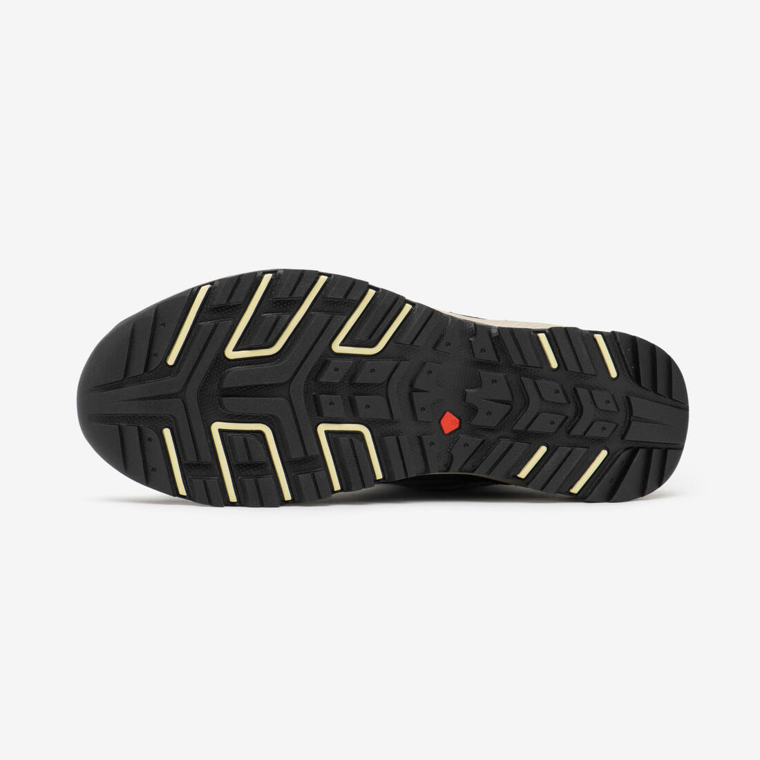 Le design de la semelle a fait l'objet de longues recherches au sein de nos laboratoires. Nous avons privilégié une formulation de caoutchouc spécifique pour optimiser l'accroche et l'adhérence. Nous recherchons systématiquement le meilleur compromis pour évoluer sur sentiers pédestres meubles ou minéraux (type forestier ou littoral). Une utilisation sur route pourra accélérer l'usure de vos chaussures et vous procurer de l'inconfort. Elles ne sont pas adaptées à la randonnée en haute montagne.