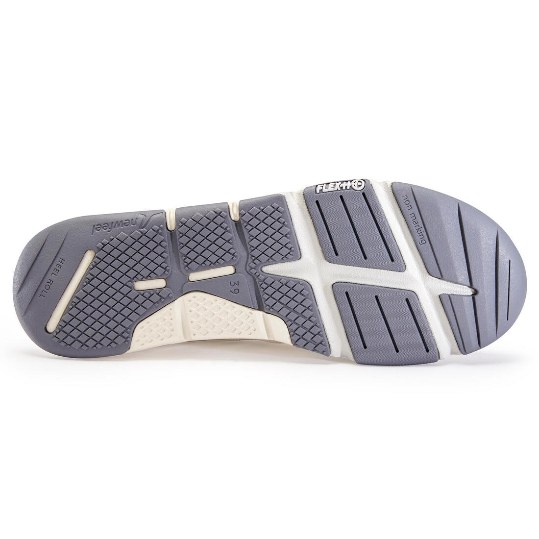 Chaque sport, sa chaussure ! En marche sportive, le pied déroule entièrement de l'attaque du talon jusqu'à la propulsion par l'avant du pied, phase durant laquelle il fléchit fortement. Les chaussures de marche sportive doivent être extrêmement souples pour accompagner parfaitement ce mouvement. C'est pourquoi Newfeel a fait de la flexibilité sa promesse principale !