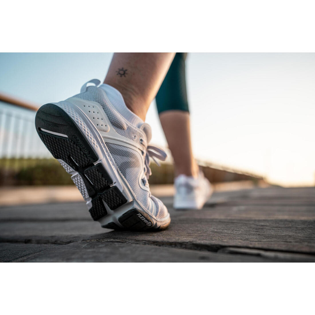 Le concept Heel Roll repose sur une géométrie de semelle dont la partie arrière externe du talon est relevée et arrondie. Les études menées par Decathlon SportsLab ont démontré qu’en marche sportive, lorsque le pied se pose sur le sol, il bascule de l'arrière vers l’avant et de l'extérieur vers l’intérieur. C’est pour guider et stabiliser naturellement ce mouvement que nos équipes de conception ont créé la géométrie Heel Roll.